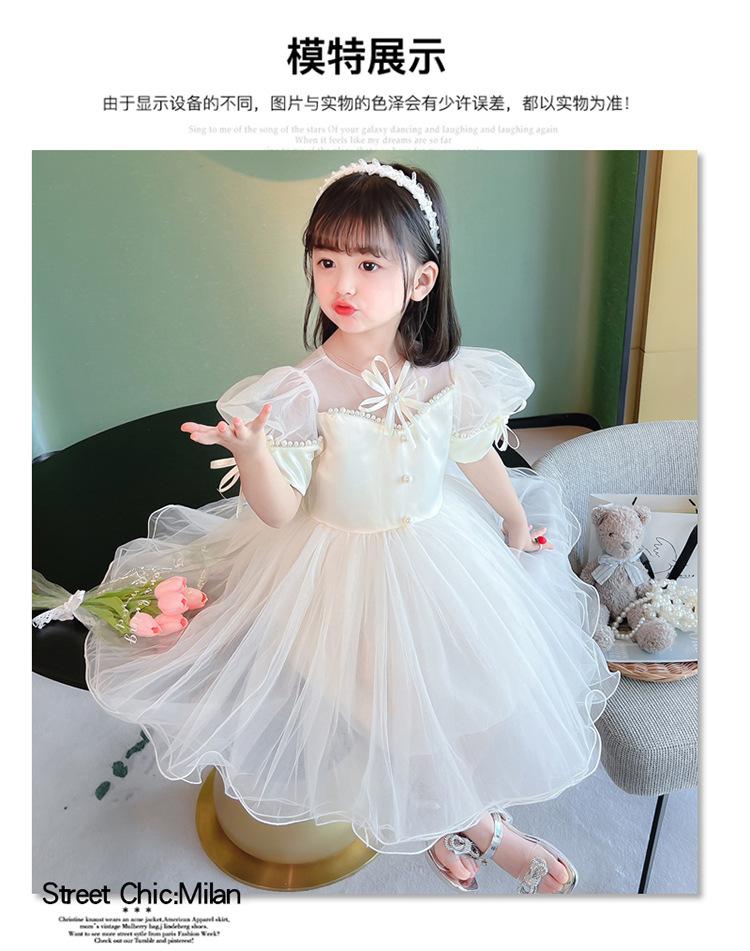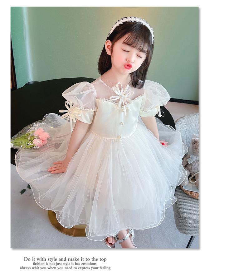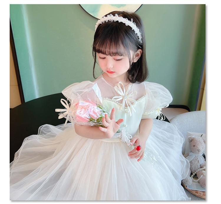 Vestido de Princesa para Niñas Verano Vestido de Malla Abullonado Vestido Bebé Celebridad de Internet Ropa de Actuación Vestido Infantil de Alta Gama Estilo Occidental