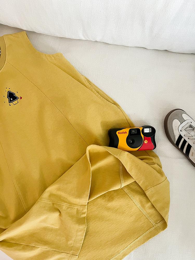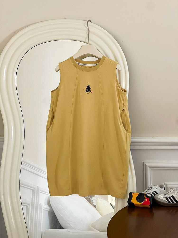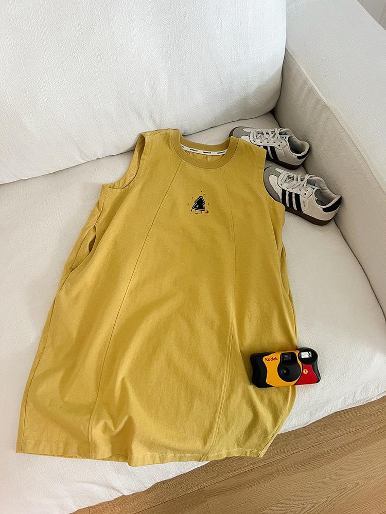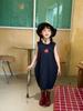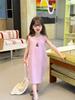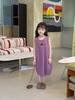 Falda Larga Simple Diaria para Niñas t Vestido de Diseño Empalmado con Bordado de Parche de Dibujos Animados Coreanos de Moda para Niños