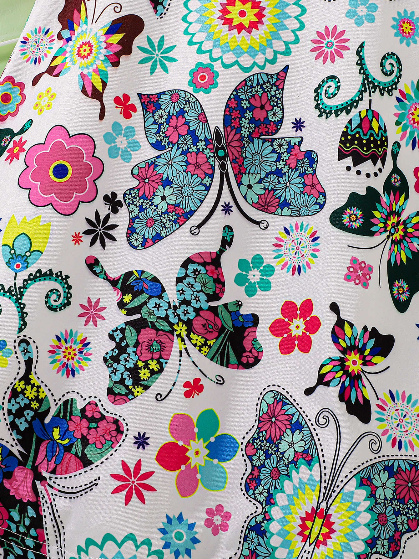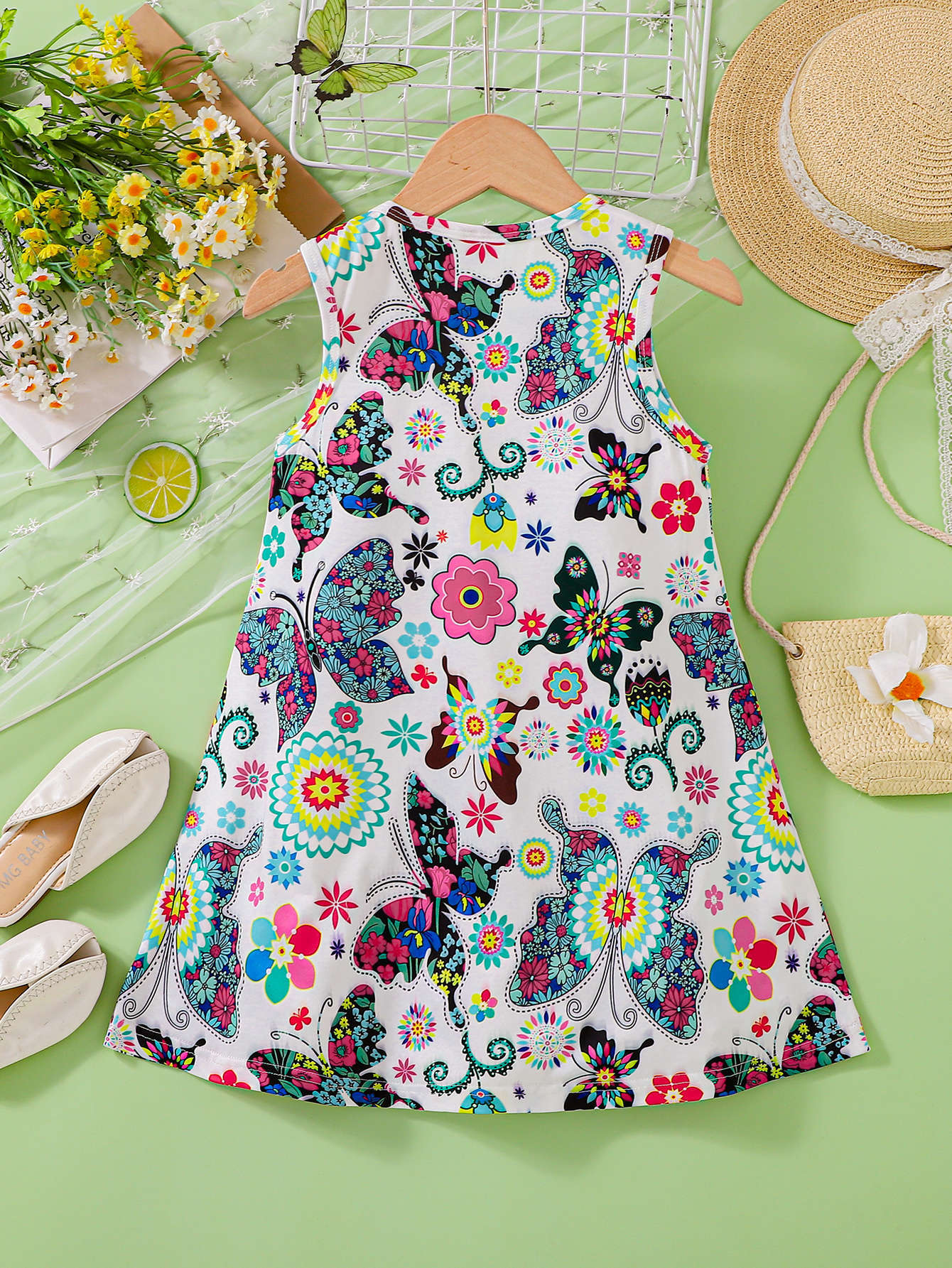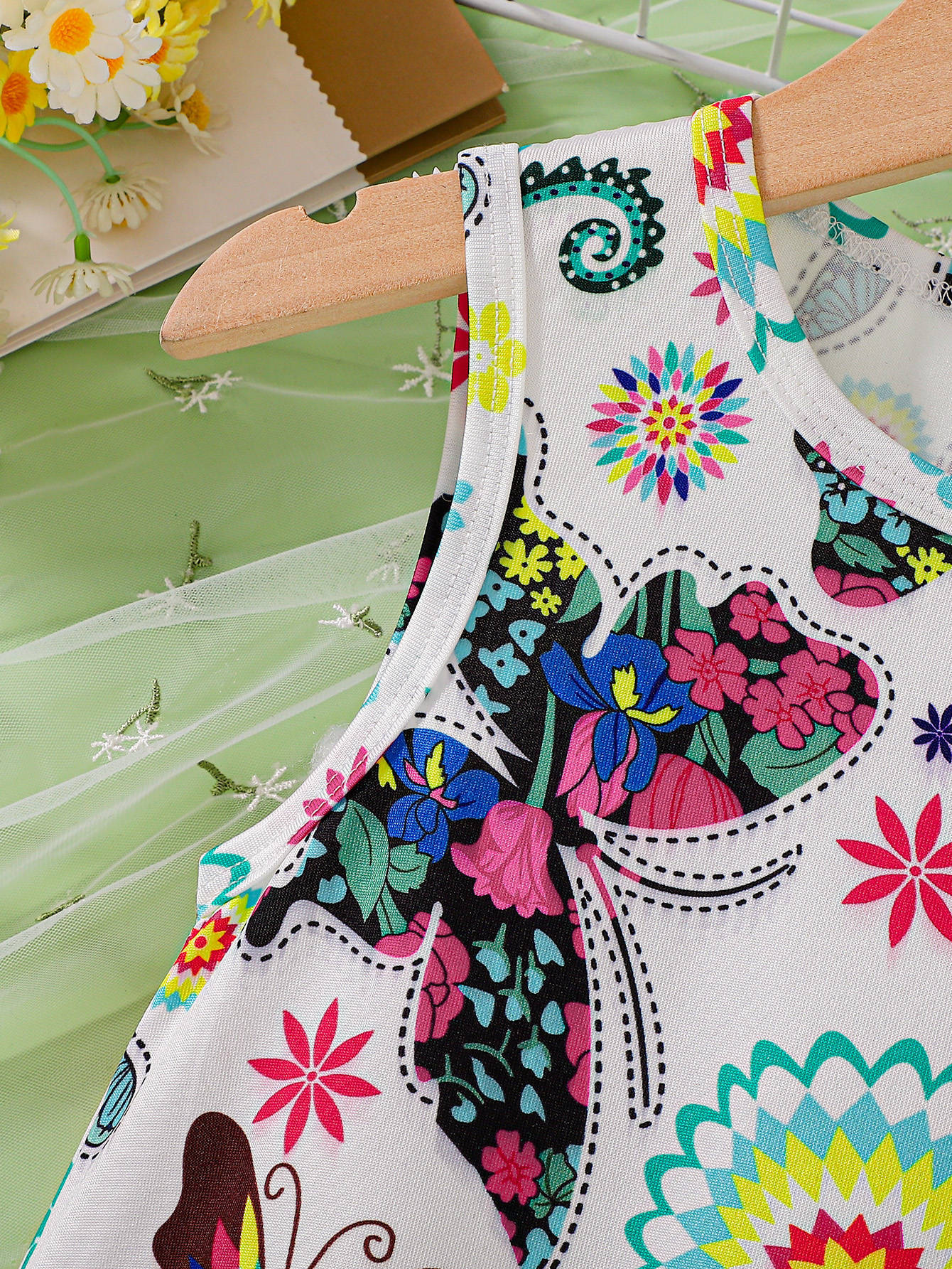 Ropa para Niños Transfronteriza Bebé Niña Verano Nuevo Patrón Floral Mariposa Vestido sin Mangas