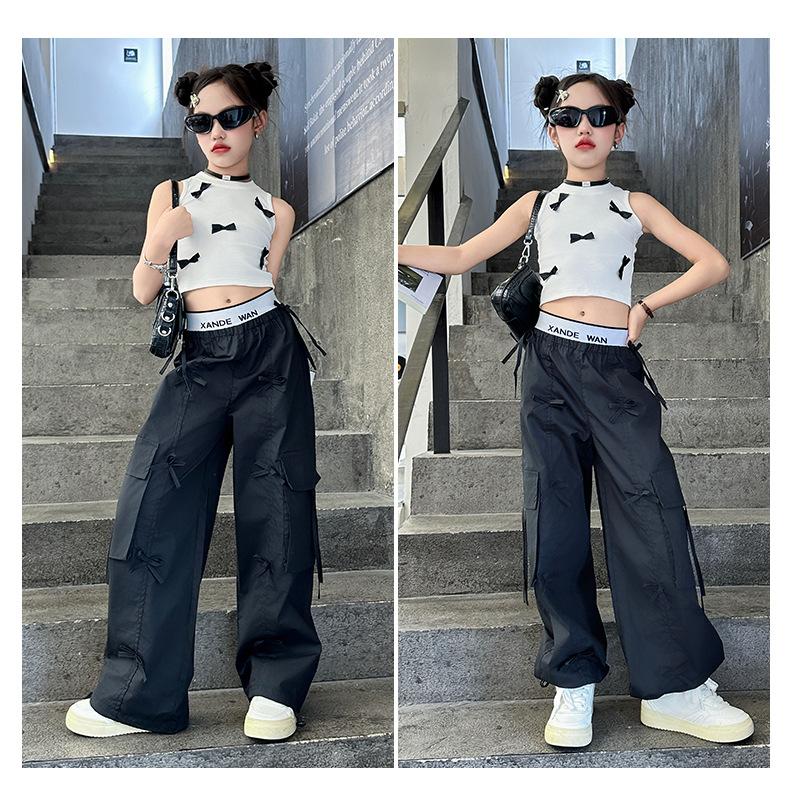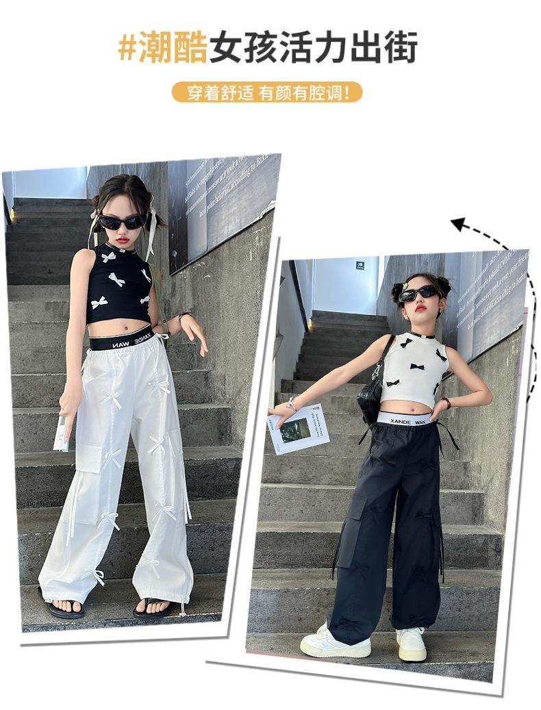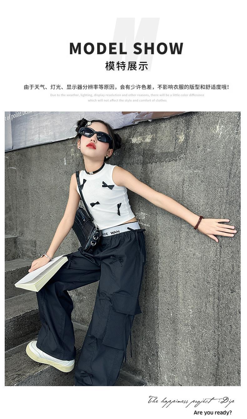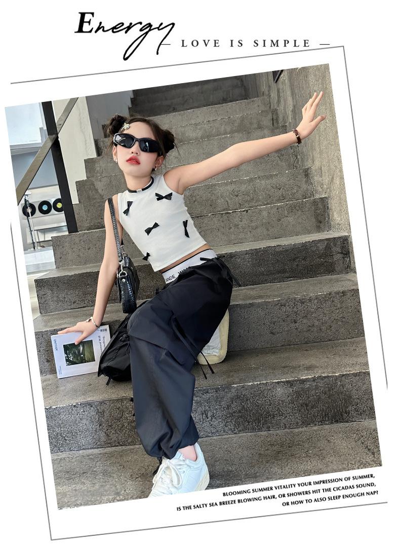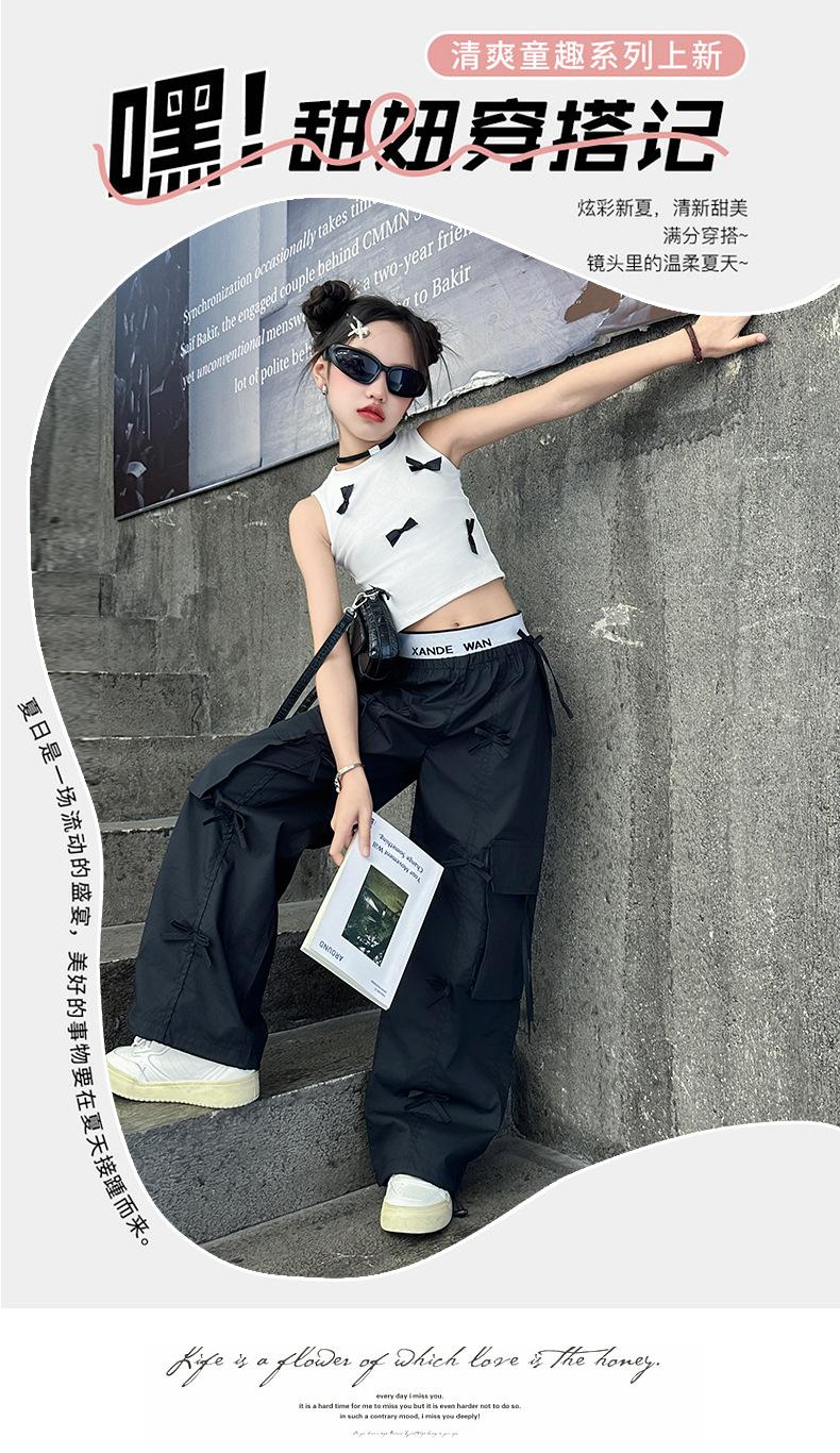 Traje de verano para niñas 2024 Nueva Moda Traje elegante con chaleco de lazo estilo coreano para niñas