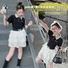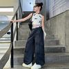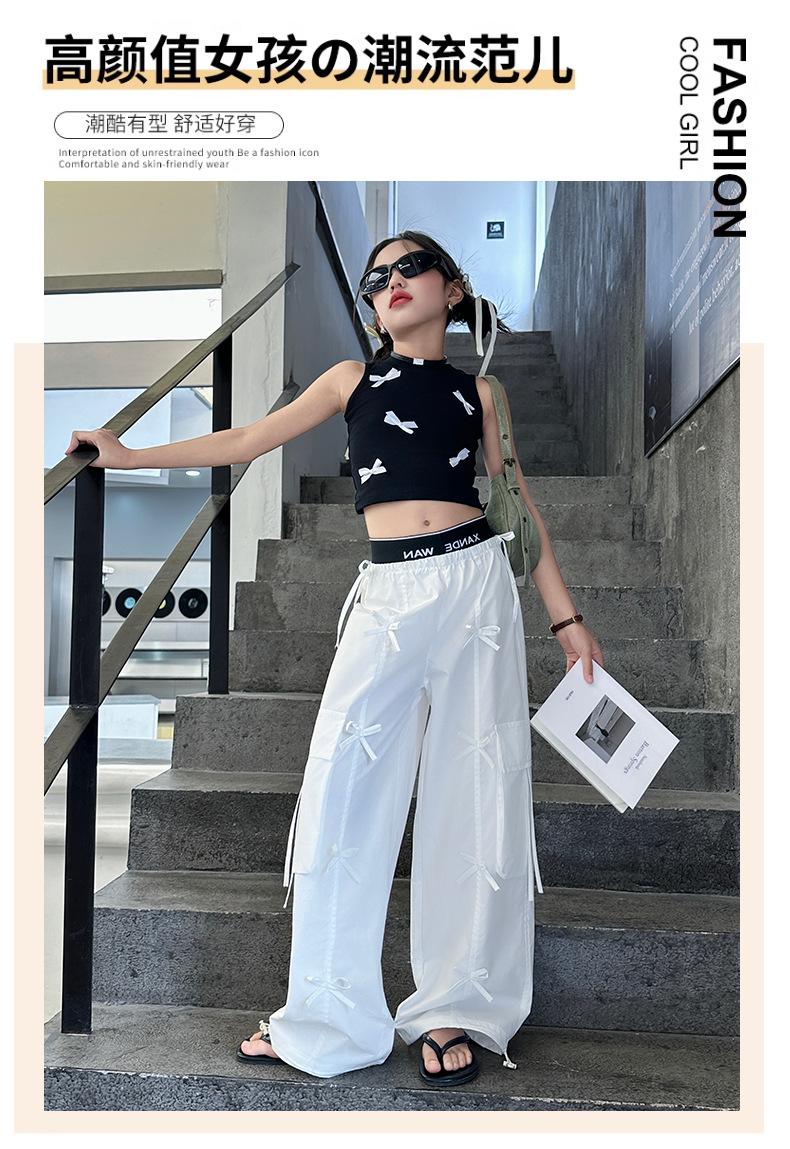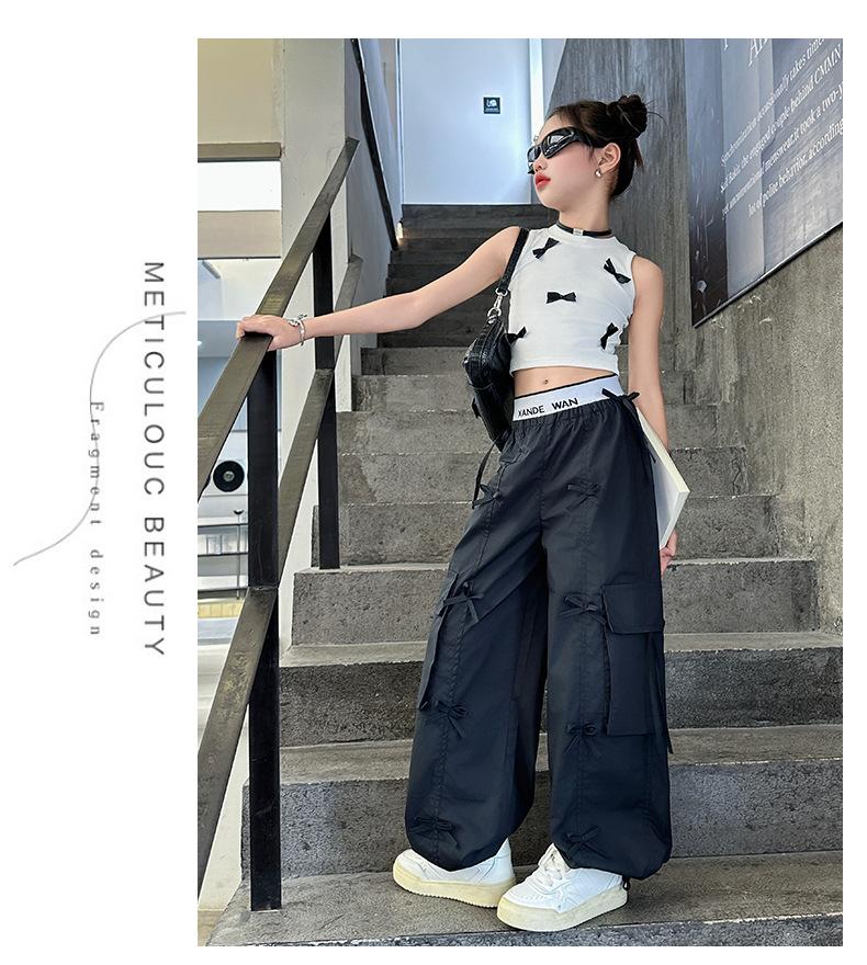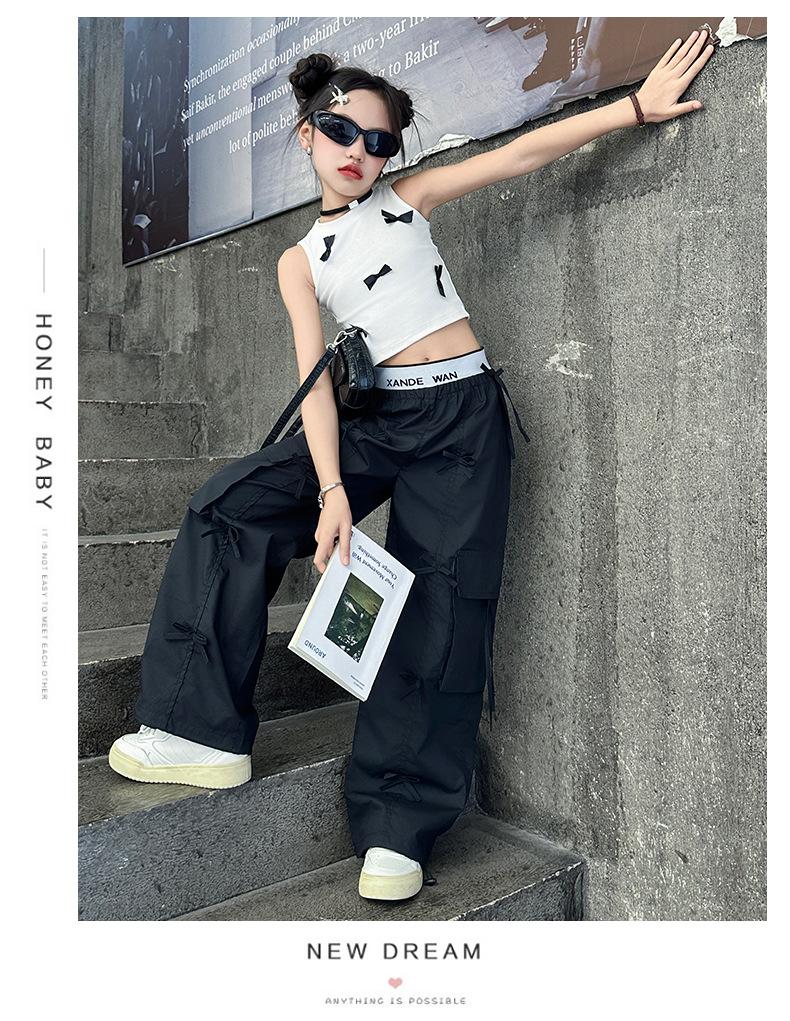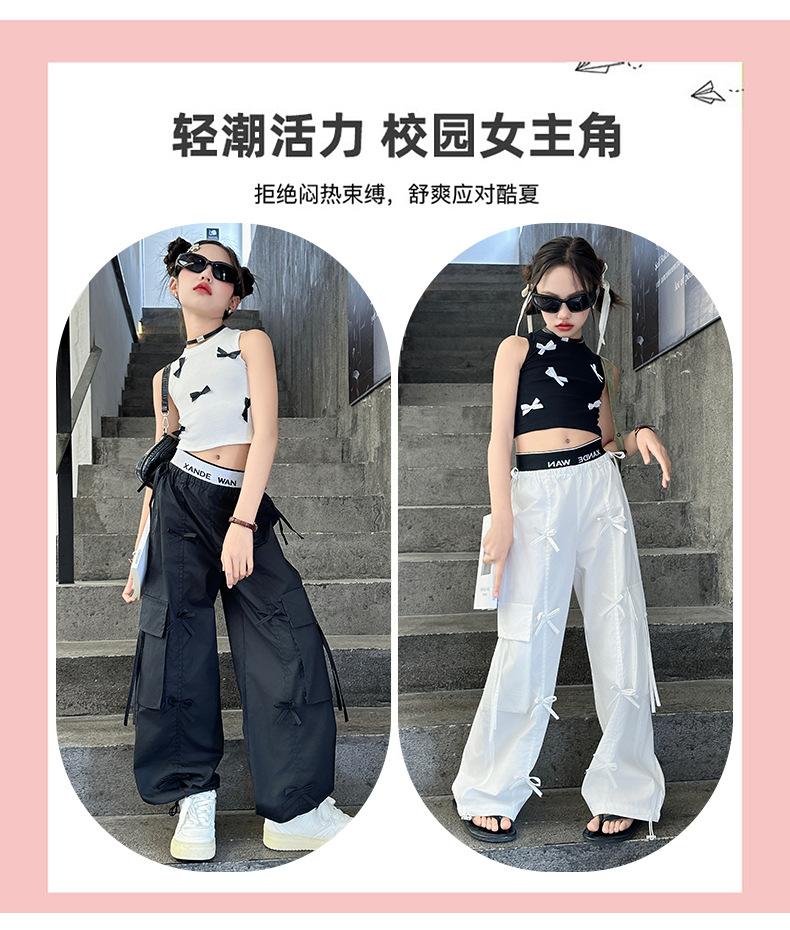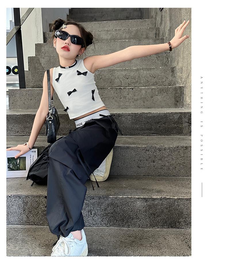 Traje de verano para niñas 2024 Nueva Moda Traje elegante con chaleco de lazo estilo coreano para niñas