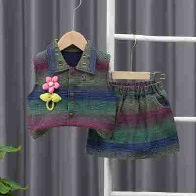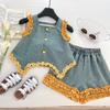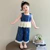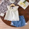 Traje de Verano para Niñas 2025 Nuevo Top de Mezclilla con Flores sin Mangas Falda Traje de Verano de Dos Piezas para Bebé
