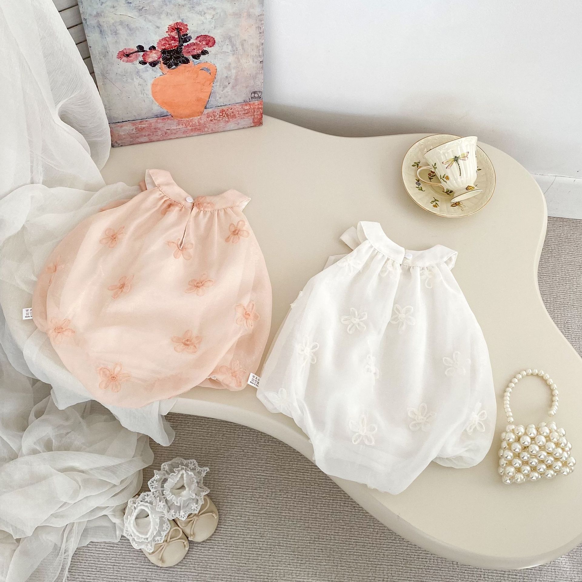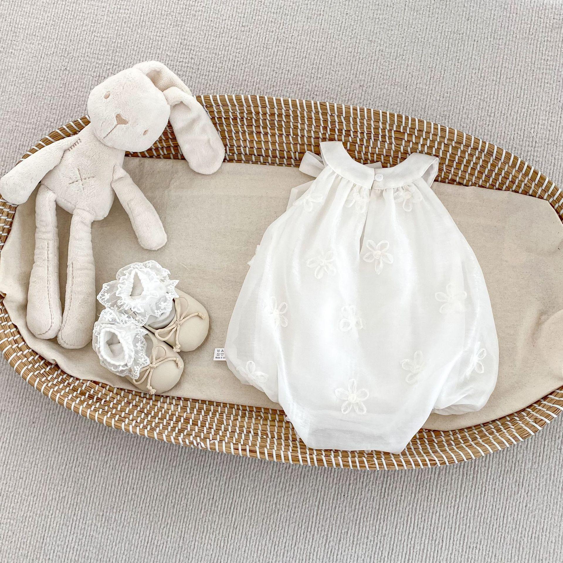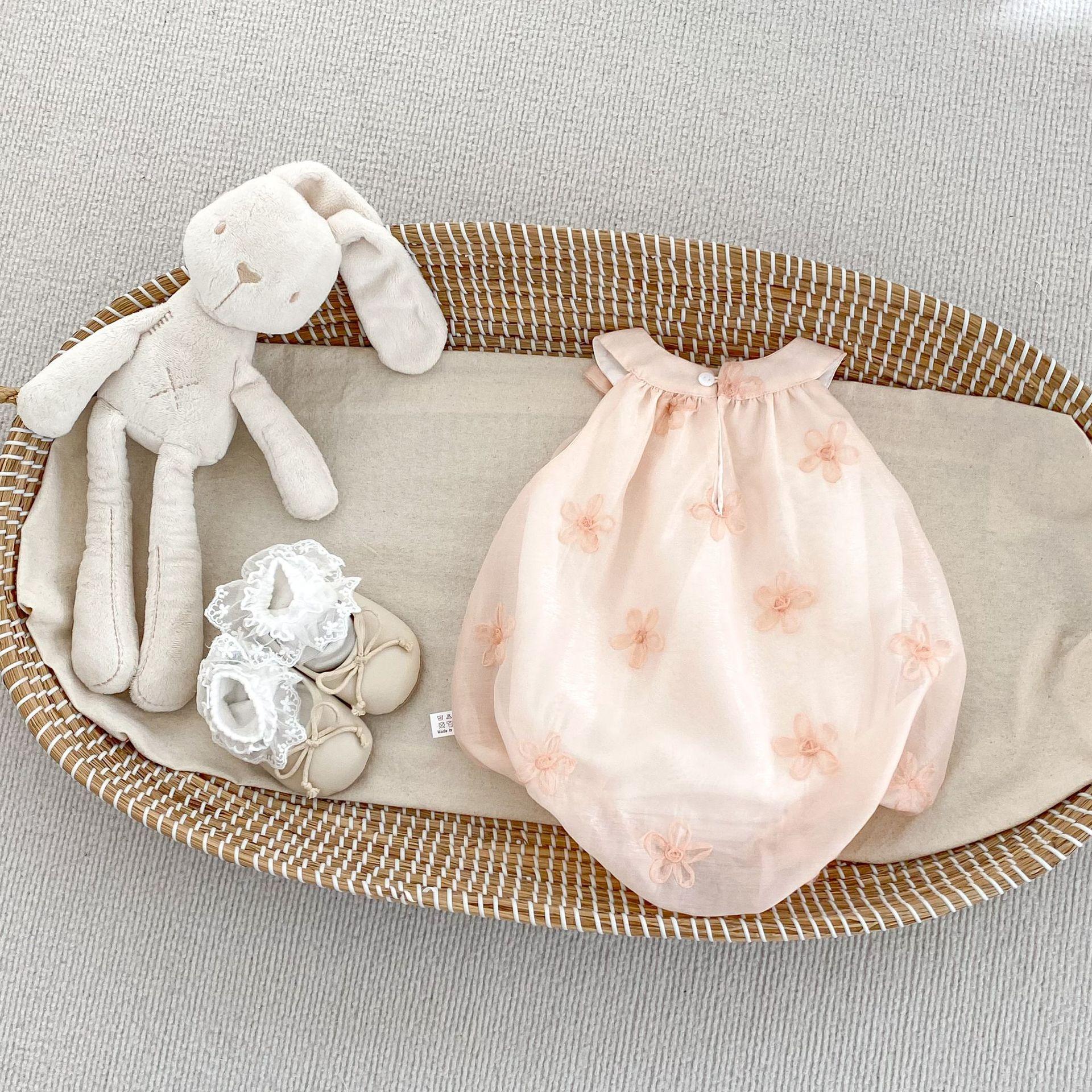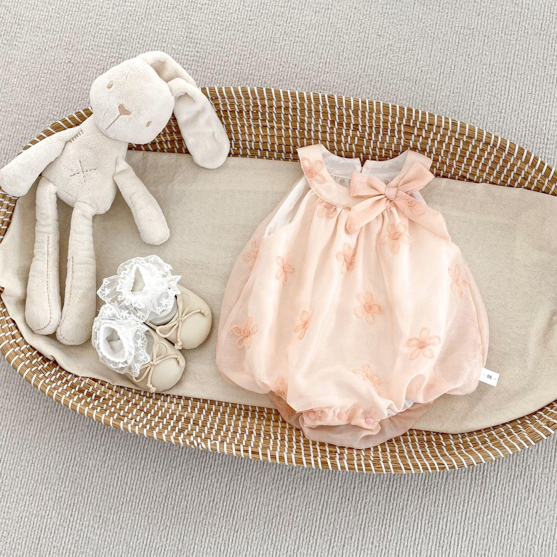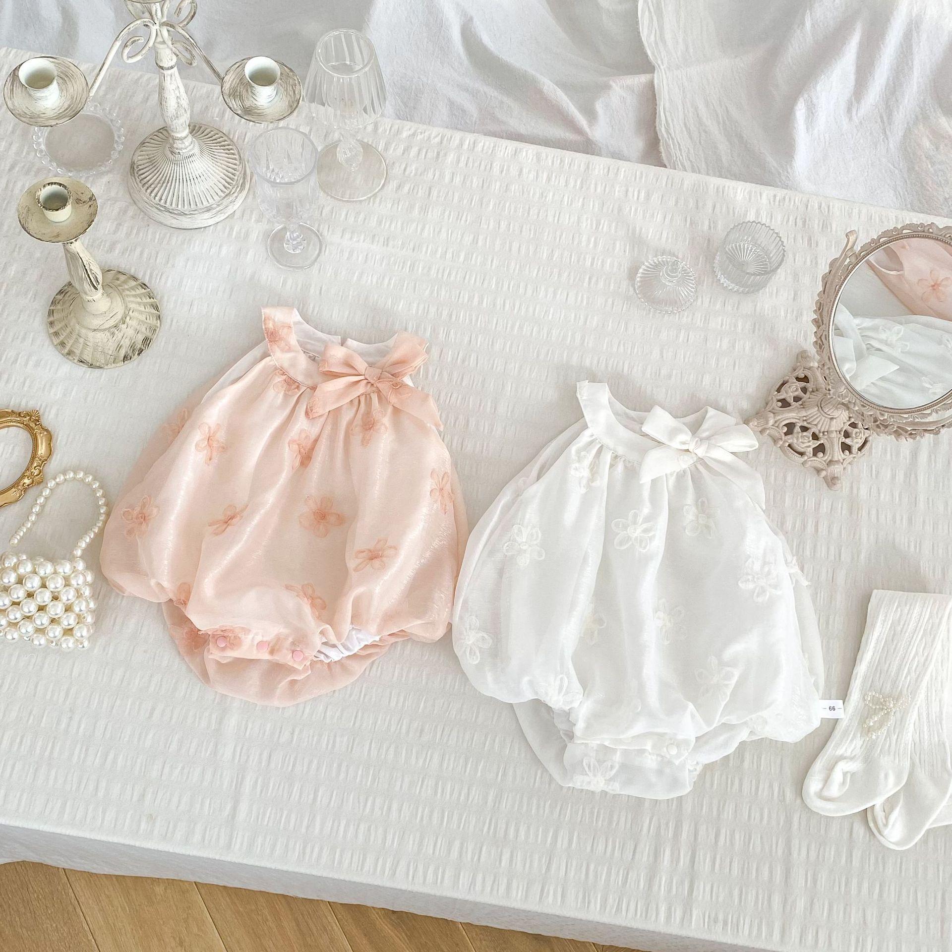 Compra INS Verano Bebé Niña Bolsa Bordada de Flores Francesas Ropa Gorda Lazo Bebé Un Año Foto Ropa para Gatear al por mayor en Joom.pro