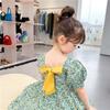2024 nuevo vestido floral para niñas verano nuevo falda de manga corta para niñas bebé lazo espalda hermosa estilo occidental masculino