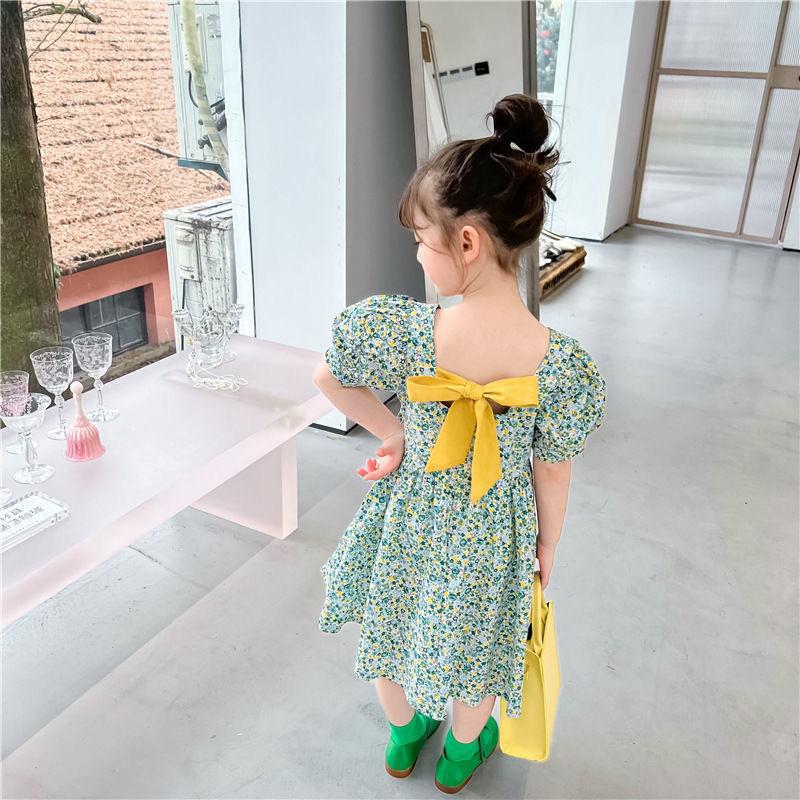 Compra 2024 nuevo vestido floral para niñas verano nuevo falda de manga corta para niñas bebé lazo espalda hermosa estilo occidental masculino al por mayor en Joom.pro