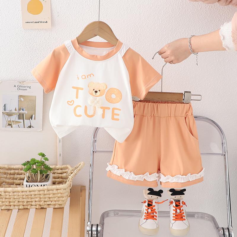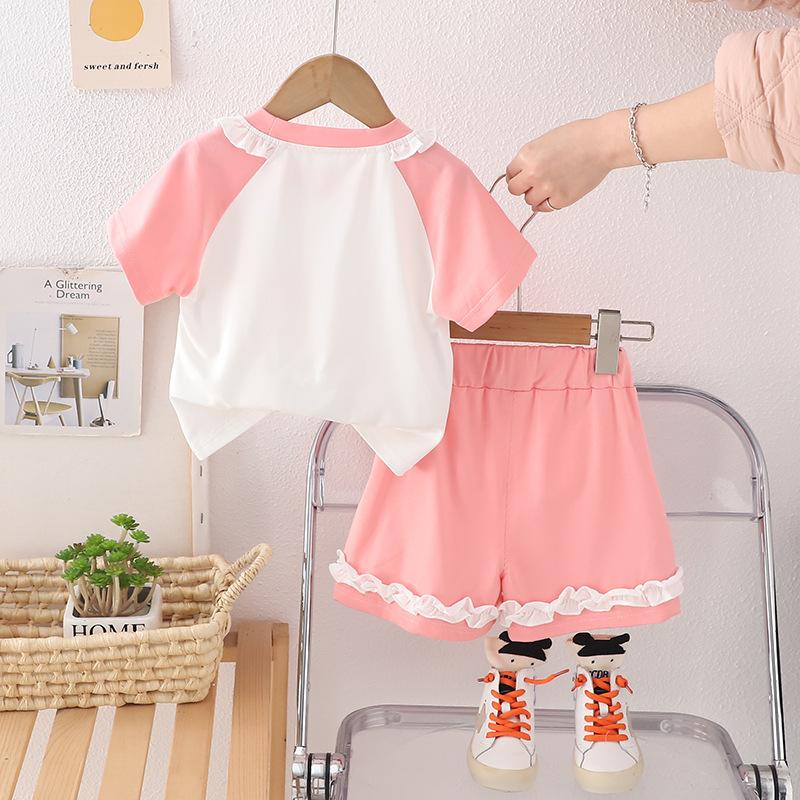 Traje de Manga Corta para Niñas 2025 Nuevo Verano Tops de Dibujos Animados Lindos para Niños Moda de Verano para Bebés Conjunto de Dos Piezas