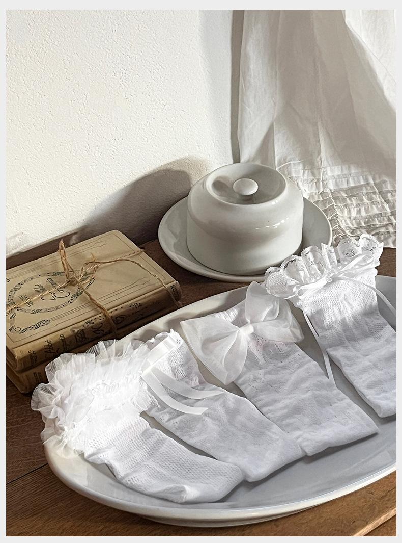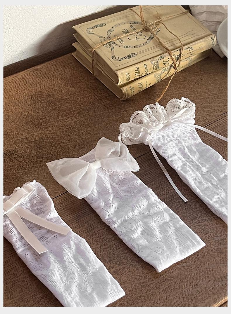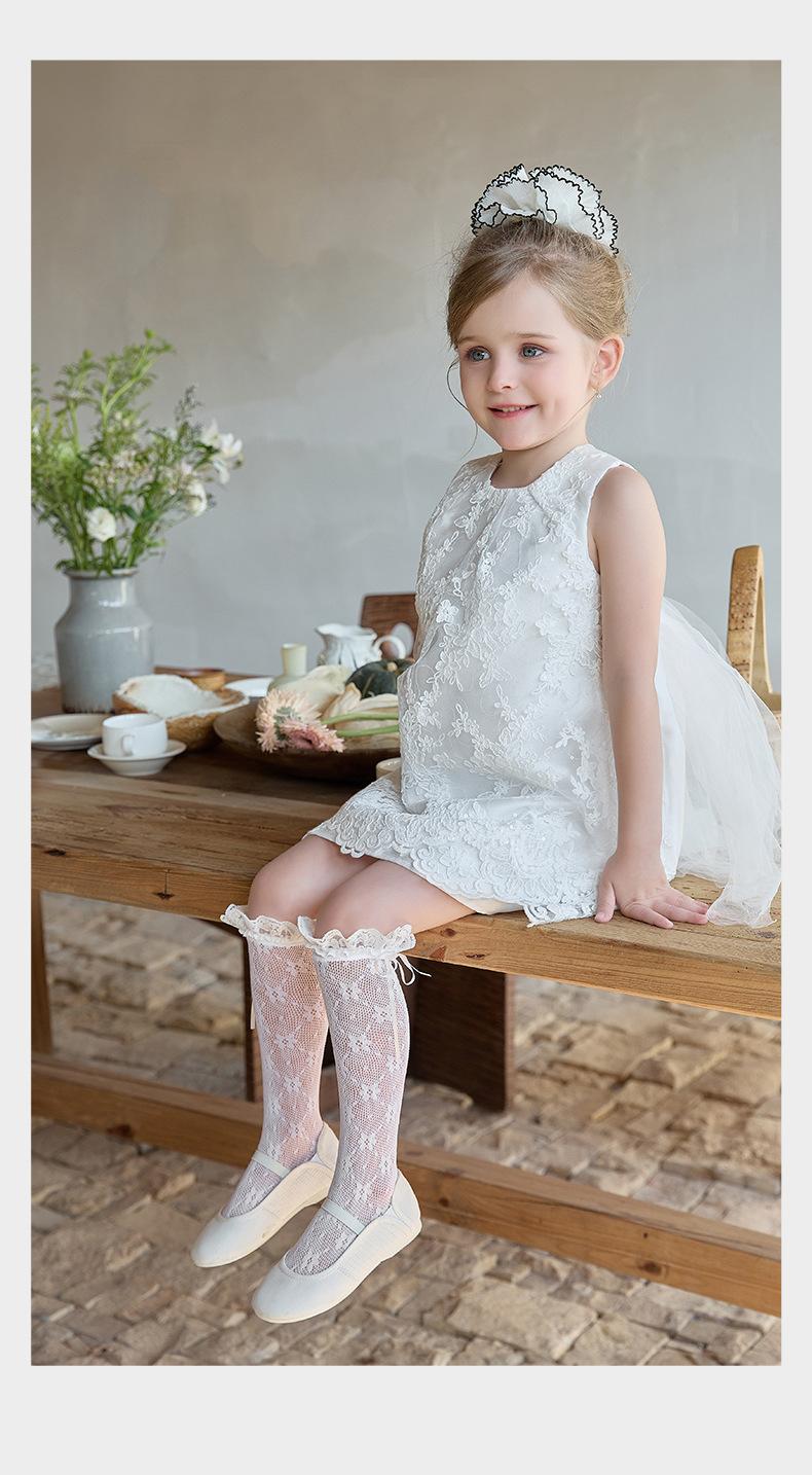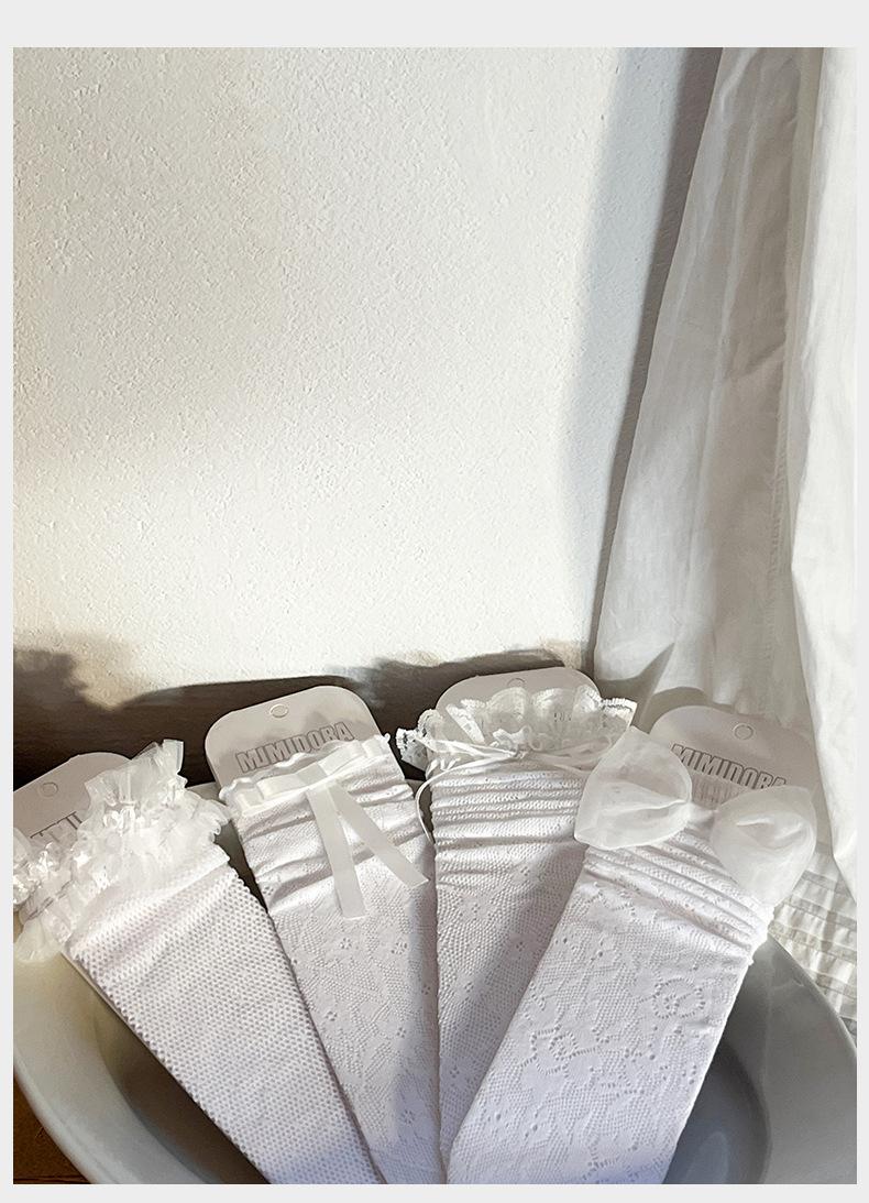 Calcetines de Niña Verano Delgados Calcetines Modernos con Lazo hasta la Media Pantorrilla Malla Transpirable Calcetines Blancos para Bebé