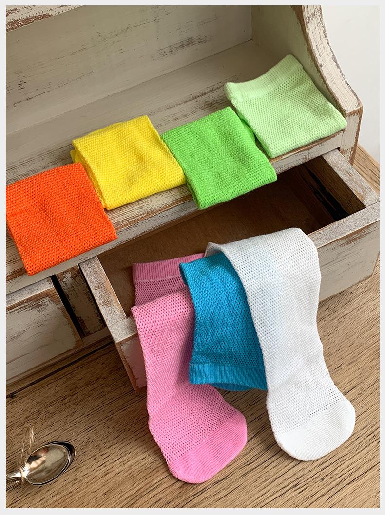 Calcetines de Malla Finos de Verano para Niñas, Calcetines de Pantorrilla de Color Caramelo Lindos para Bebé, Calcetines de Algodón Transpirables de Color Puro, Calcetines para Niños