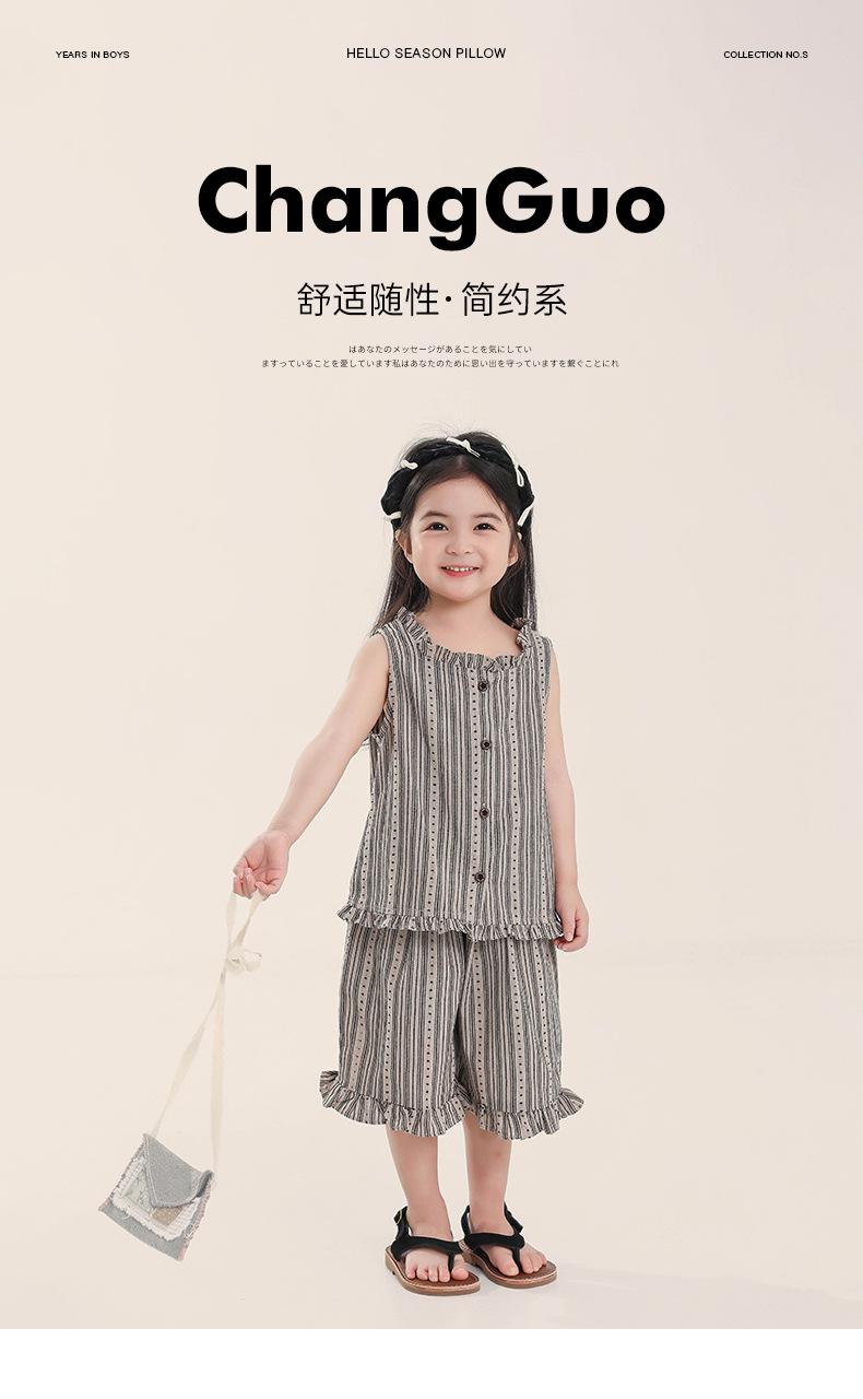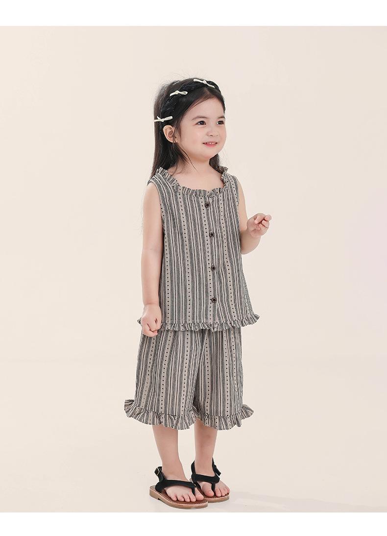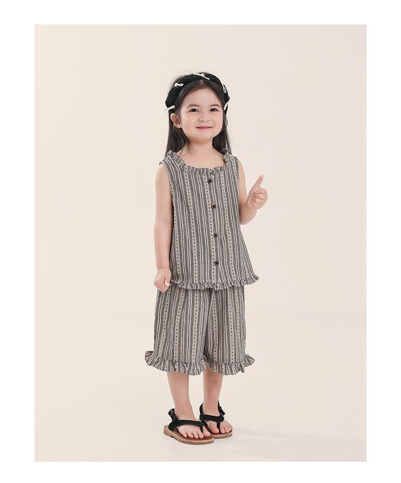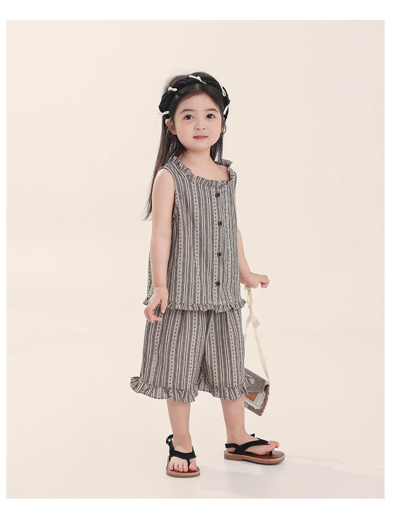 Ropa para Niñas Conjunto de Verano para Niñas Nuevo Conjunto de Dos Piezas con Volantes a Rayas Chaleco y Shorts para Niñas Pequeñas