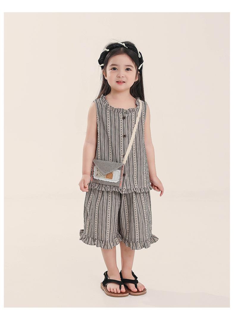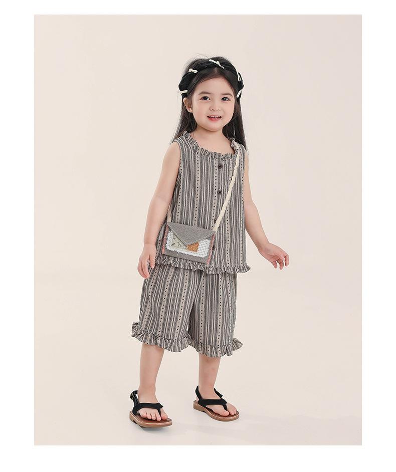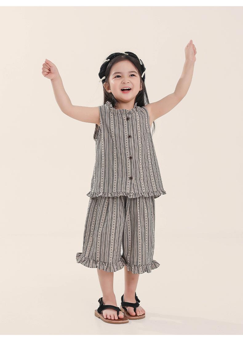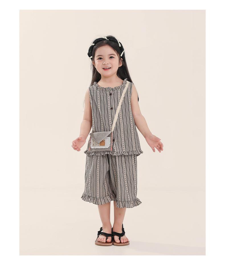 Ropa para Niñas Conjunto de Verano para Niñas Nuevo Conjunto de Dos Piezas con Volantes a Rayas Chaleco y Shorts para Niñas Pequeñas