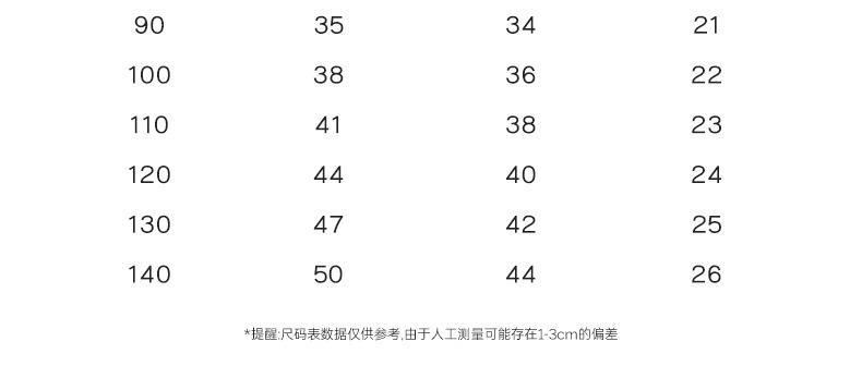 90cm, 100cm, 110cm, 120cm, 130cm, 140cm
