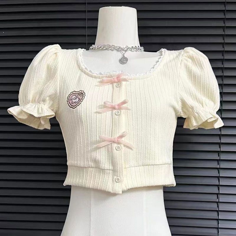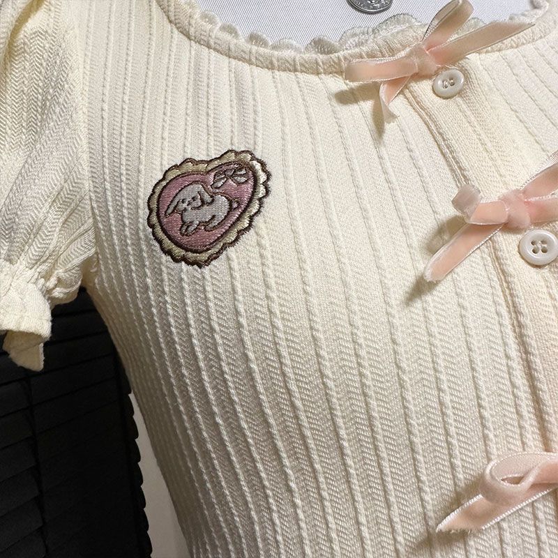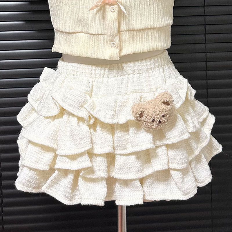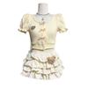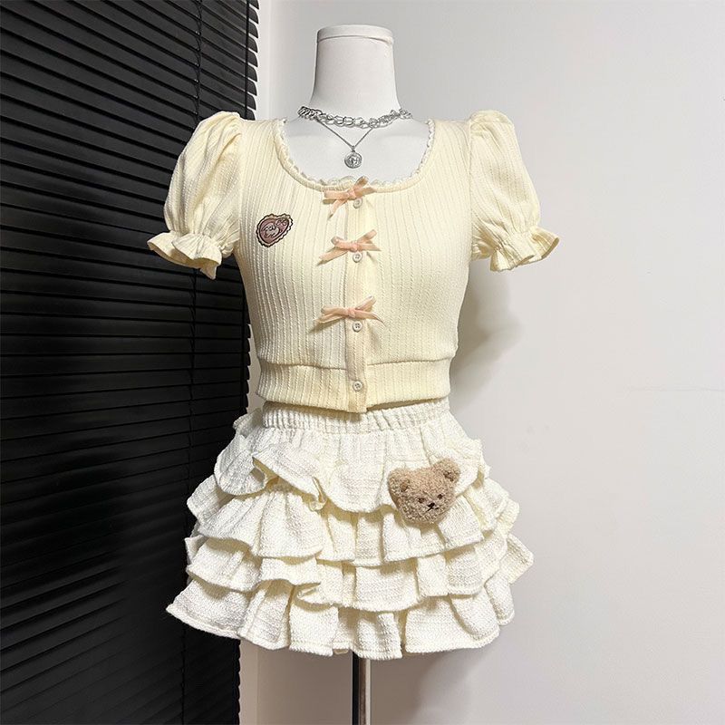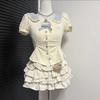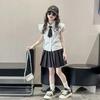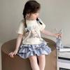 Traje lindo de estilo coreano para niñas celebridades de Internet para niños mayores, nuevo estilo de verano, conjunto de dos piezas de falda de manga corta con lazo de dibujos animados