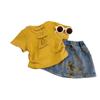 Dulce Conjunto de Verano para Niña Nueva Camiseta Elegante con Lazo para Bebé de Jardín de Niños Falda de Mezclilla Conjunto de Dos Piezas
