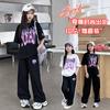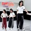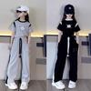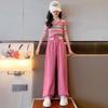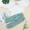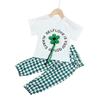 Traje de Verano de Manga Corta para Niños Camiseta con Letras de Estilo Coreano para Niños Pantalones a Cuadros de Color en Contraste Traje de Dos Piezas para Niñas