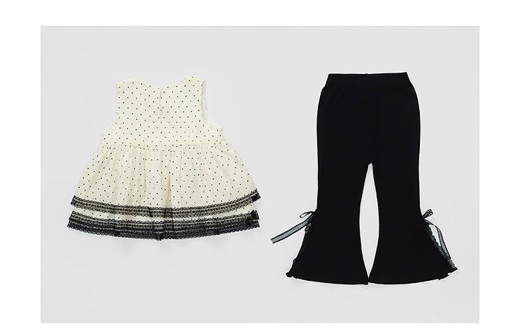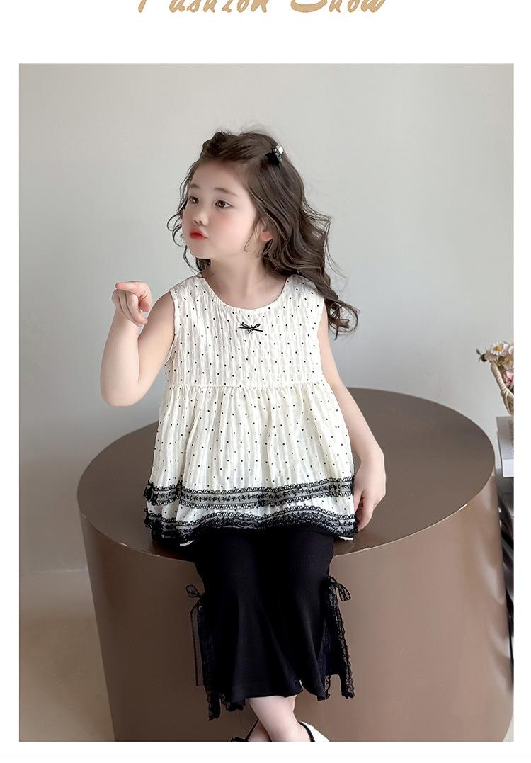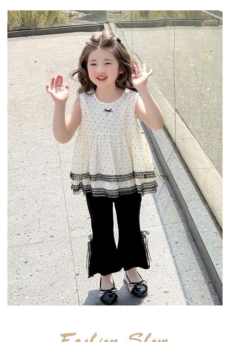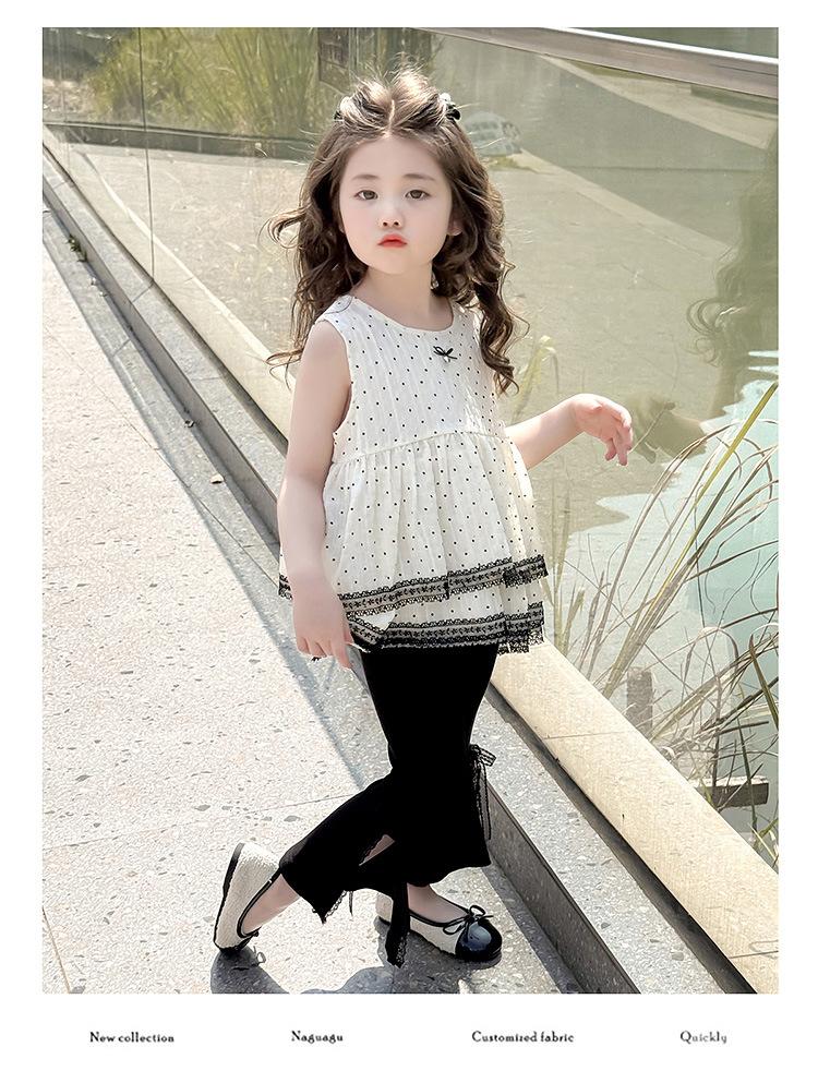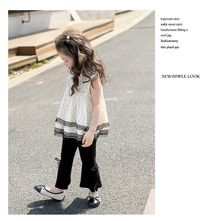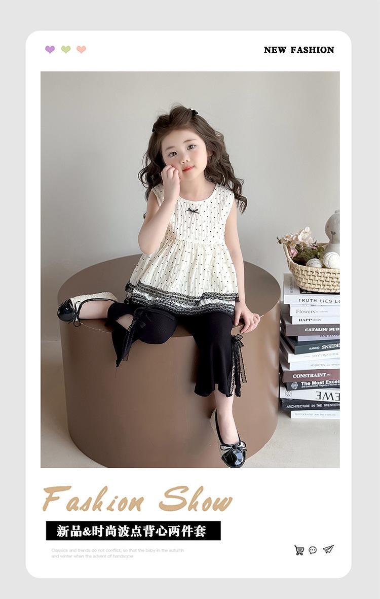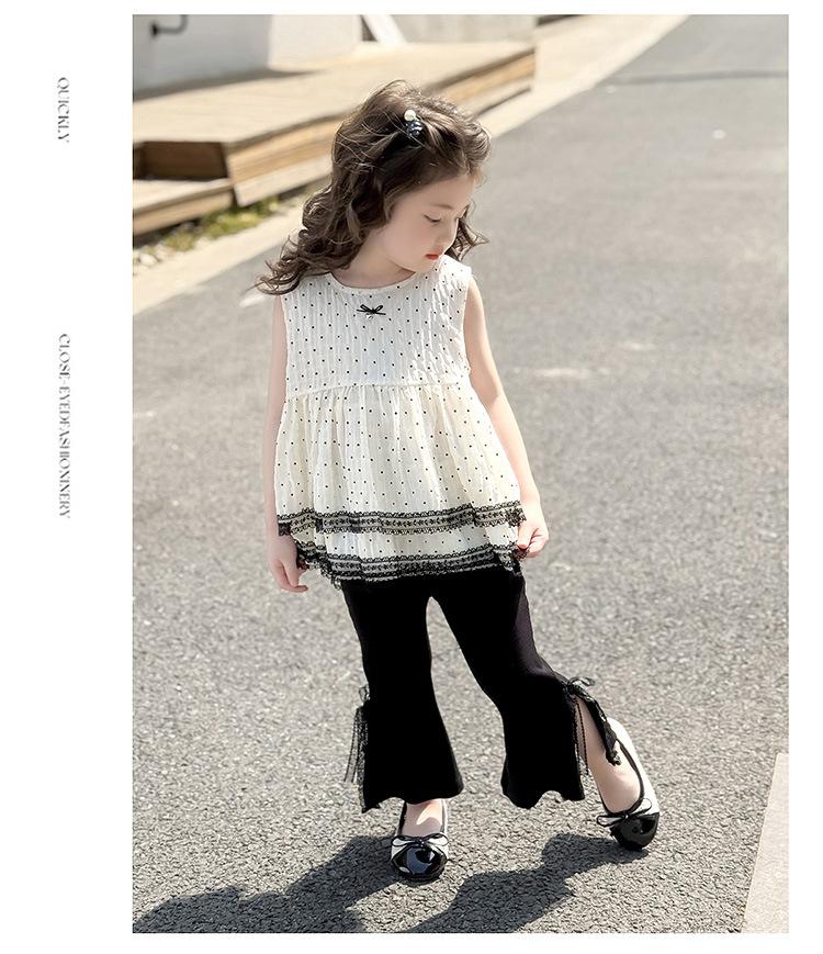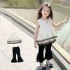 Traje de pantalones acampanados de punto de lunares para niña 2025 Verano Nueva Moda Niña Elegante Conjunto de dos piezas Vestido de verano para niños