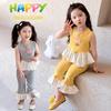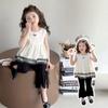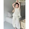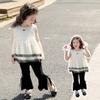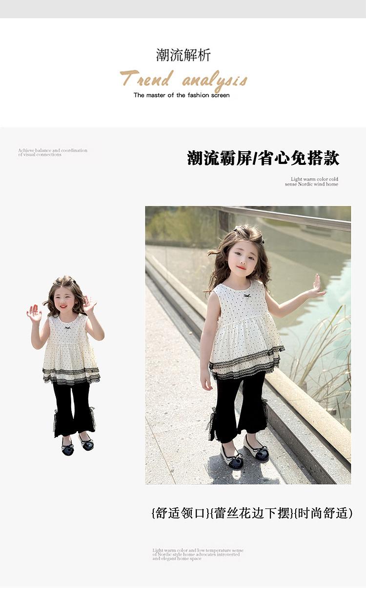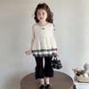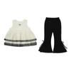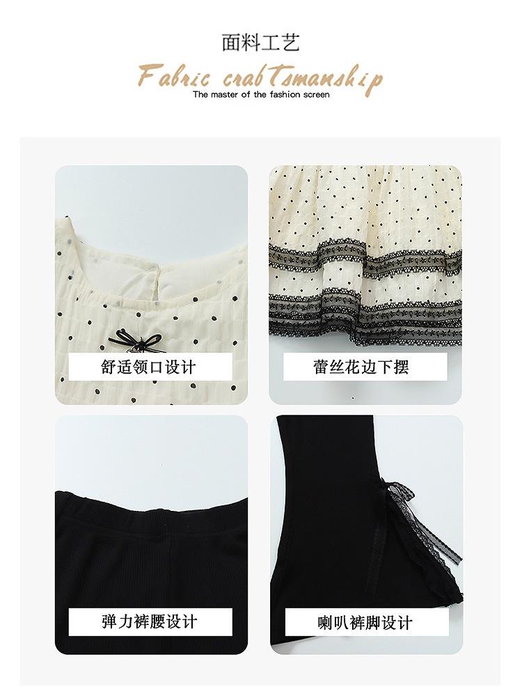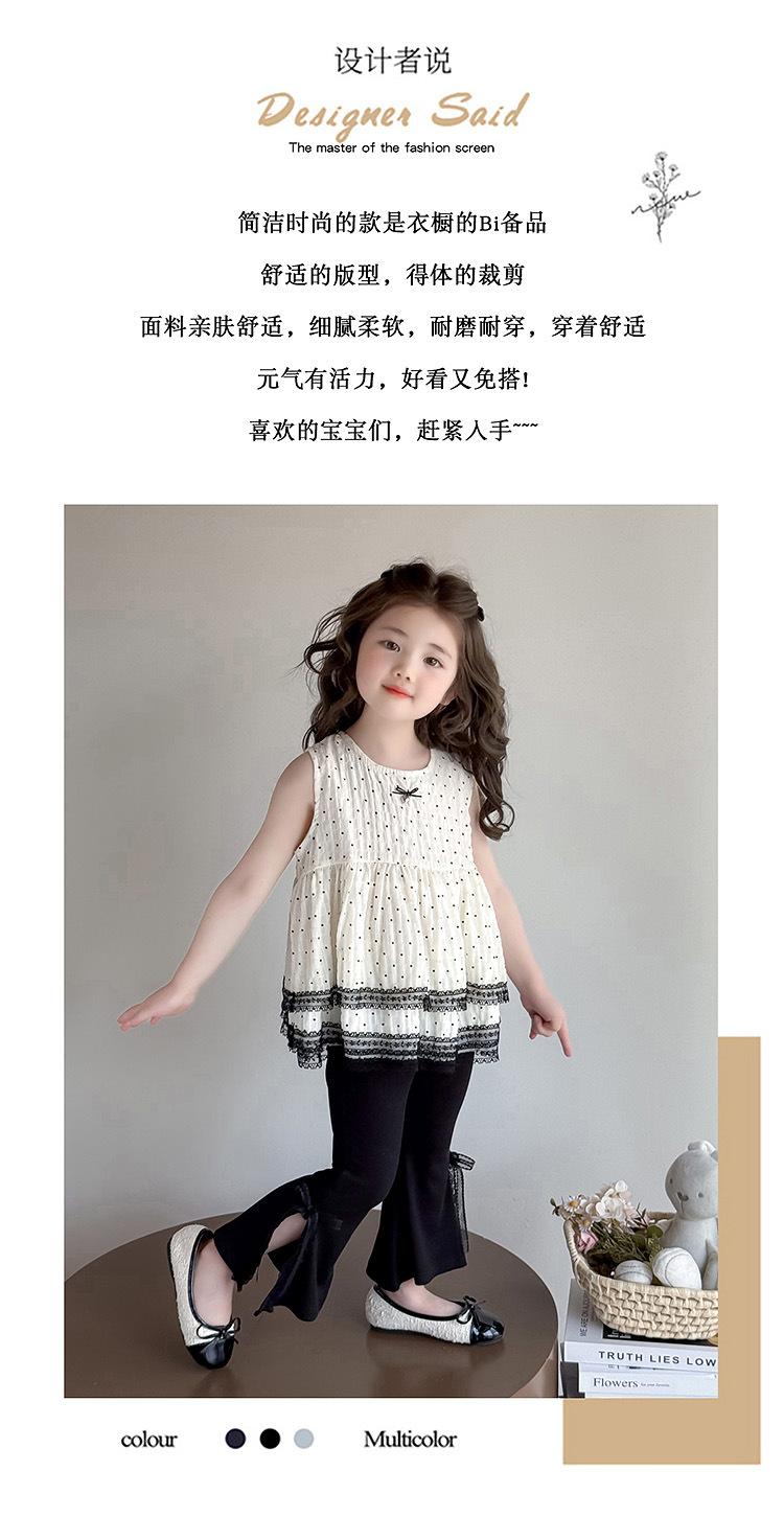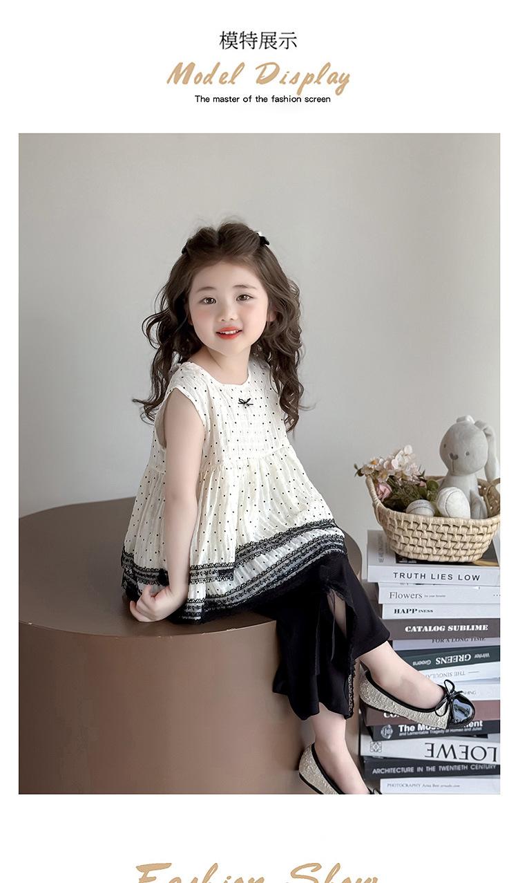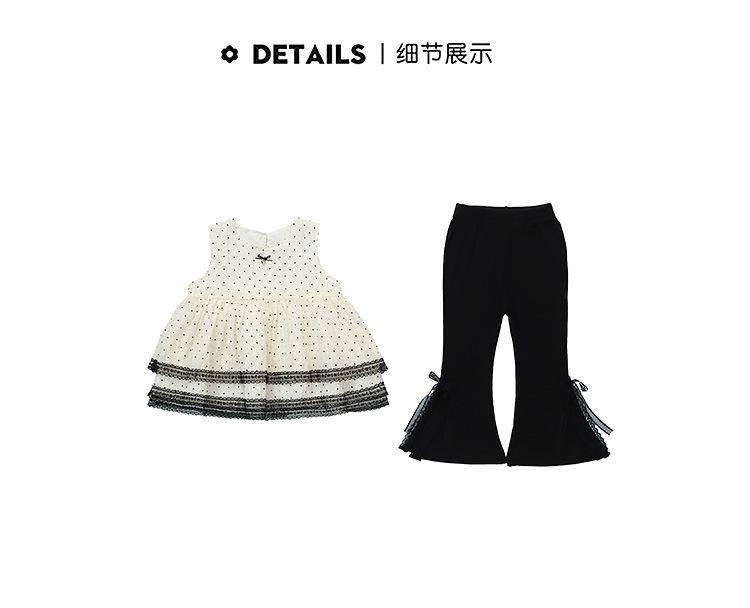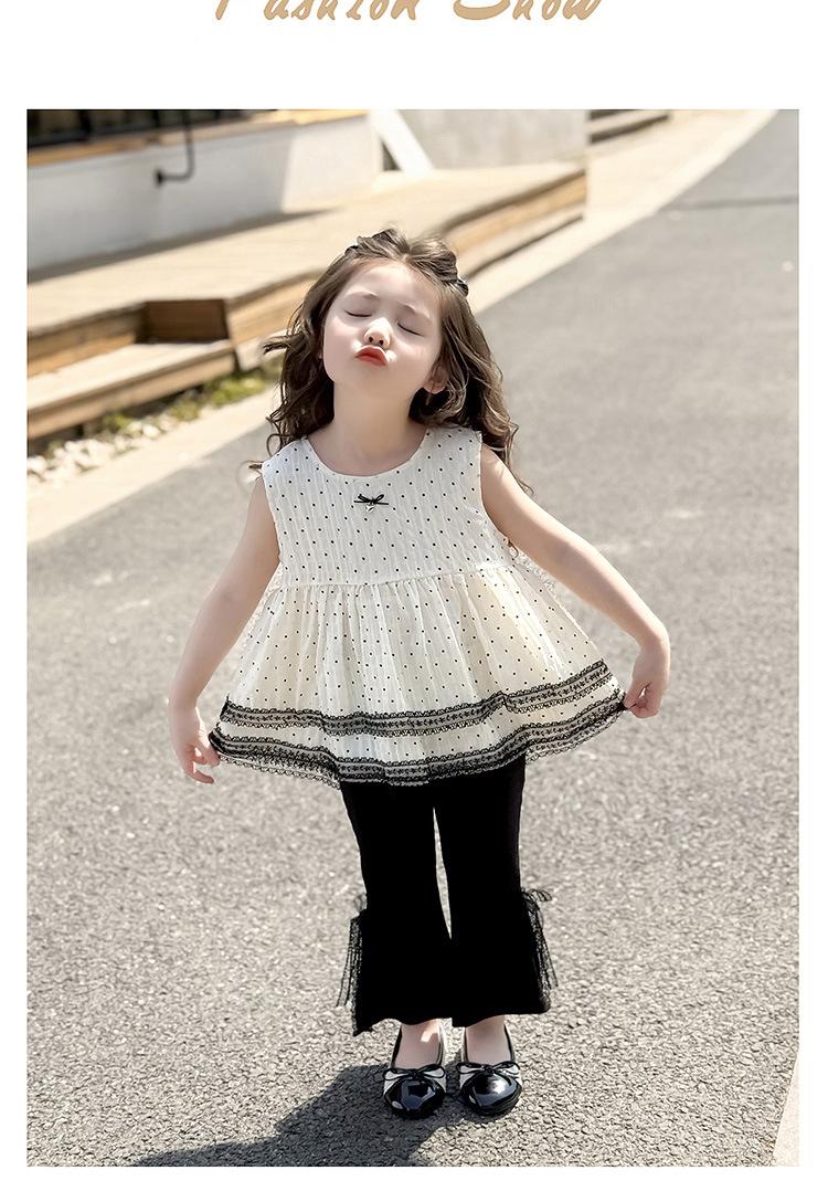 Traje de pantalones acampanados de punto de lunares para niña 2025 Verano Nueva Moda Niña Elegante Conjunto de dos piezas Vestido de verano para niños
