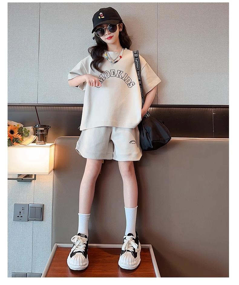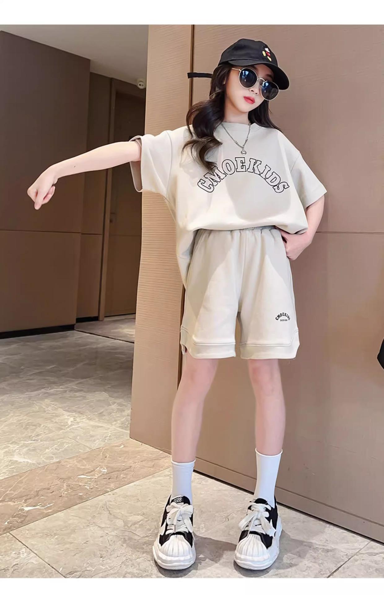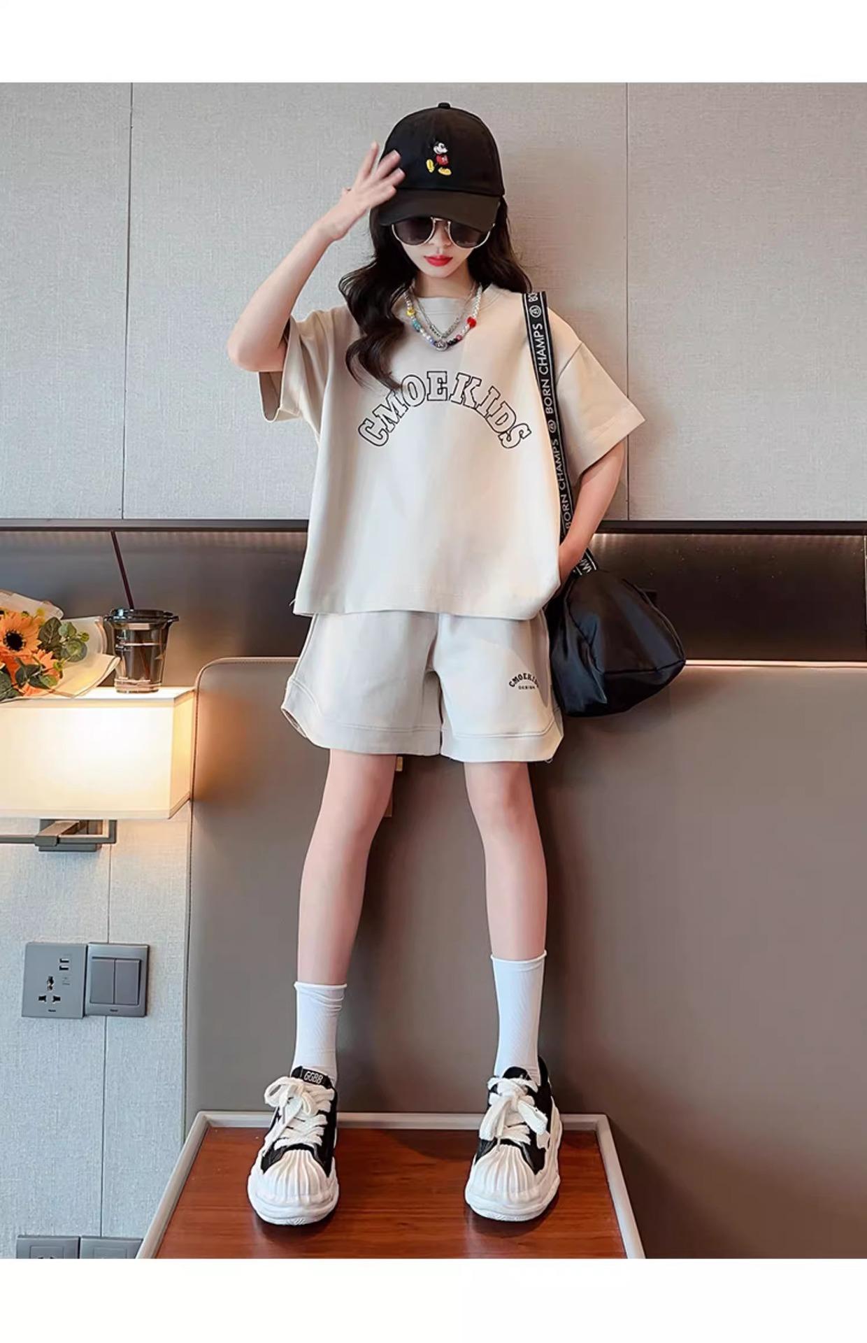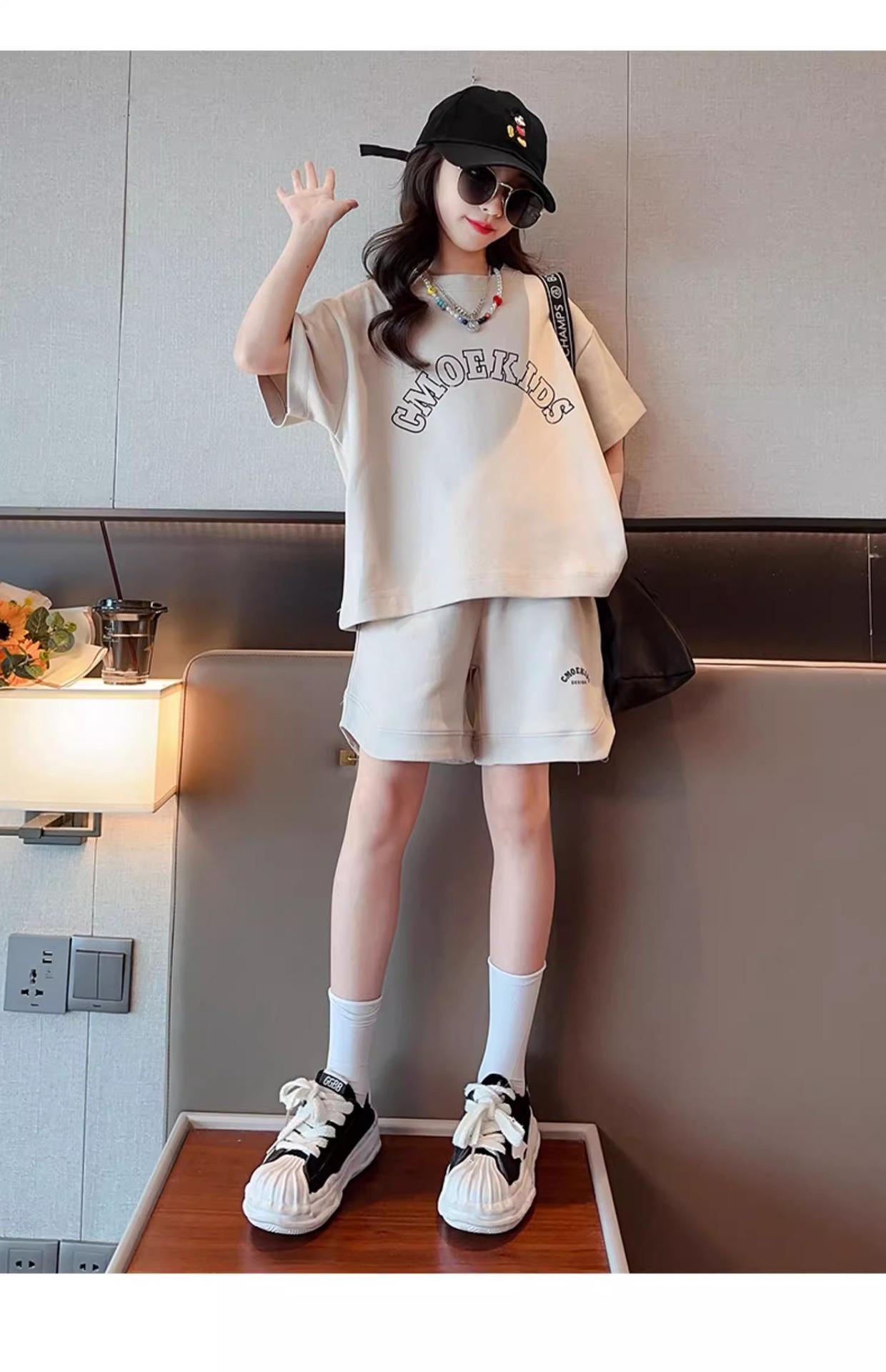 Traje de Manga Corta para Niños Verano Estilo Delgado Moderno Trendy Ropa Deportiva para Niñas y Niños Shorts Casuales Conjunto de Dos Piezas