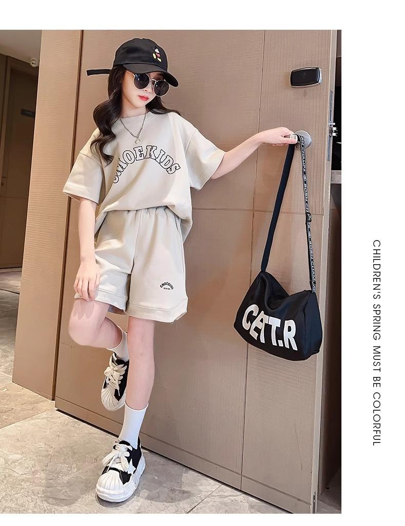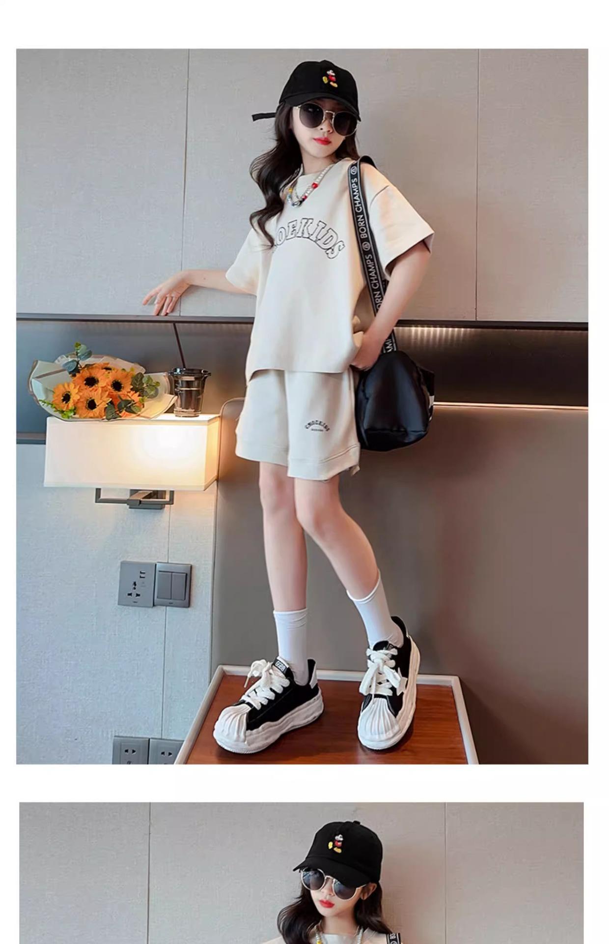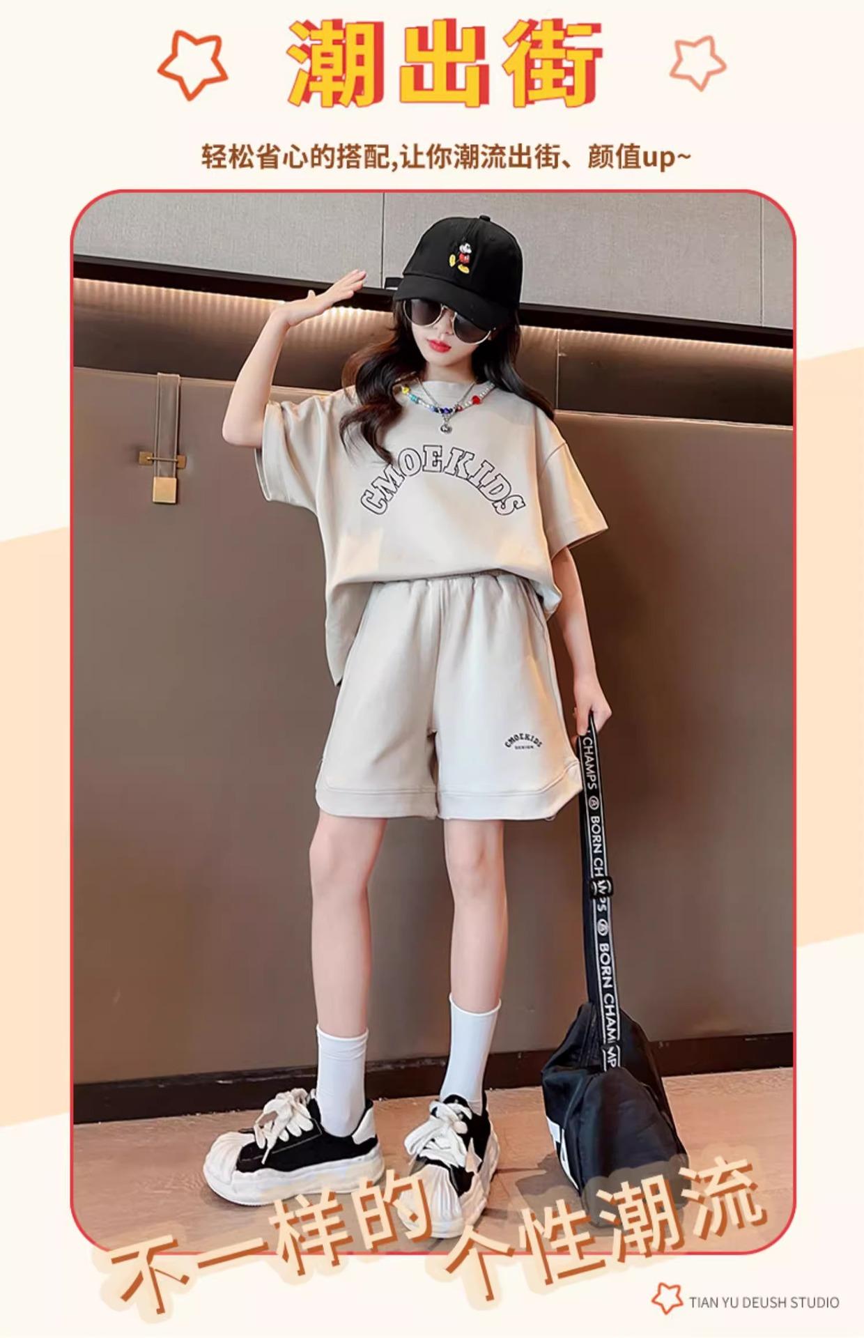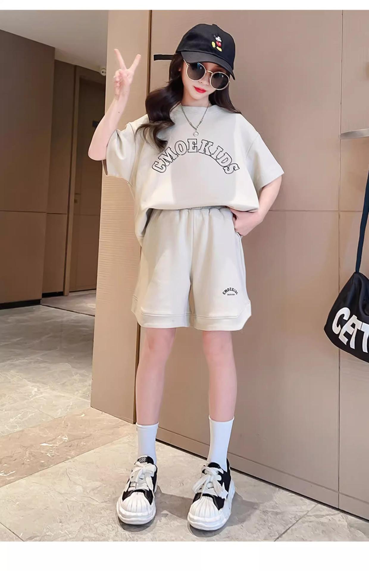 Traje de Manga Corta para Niños Verano Estilo Delgado Moderno Trendy Ropa Deportiva para Niñas y Niños Shorts Casuales Conjunto de Dos Piezas