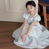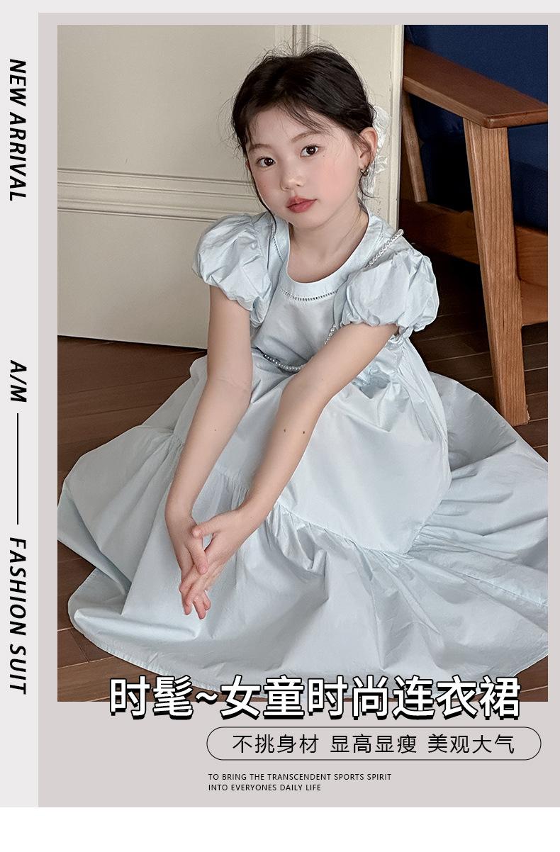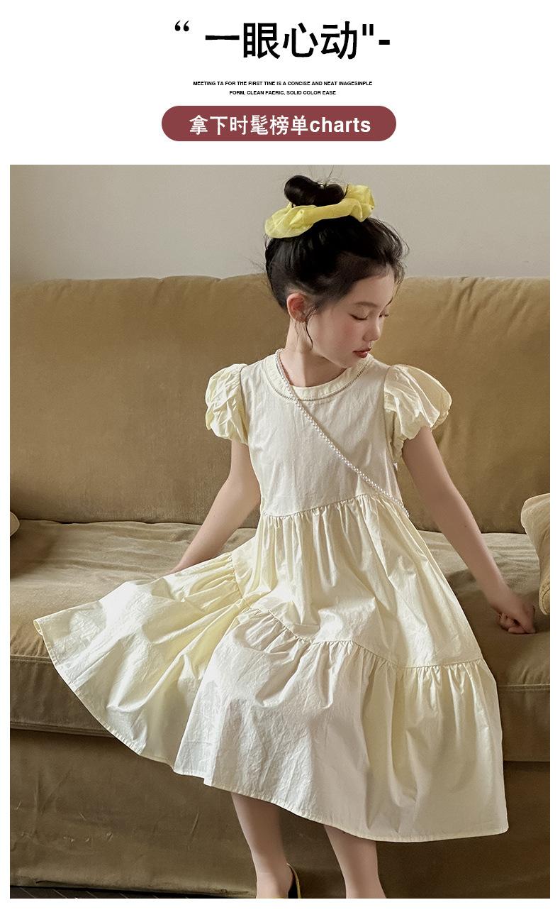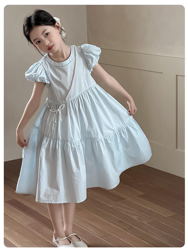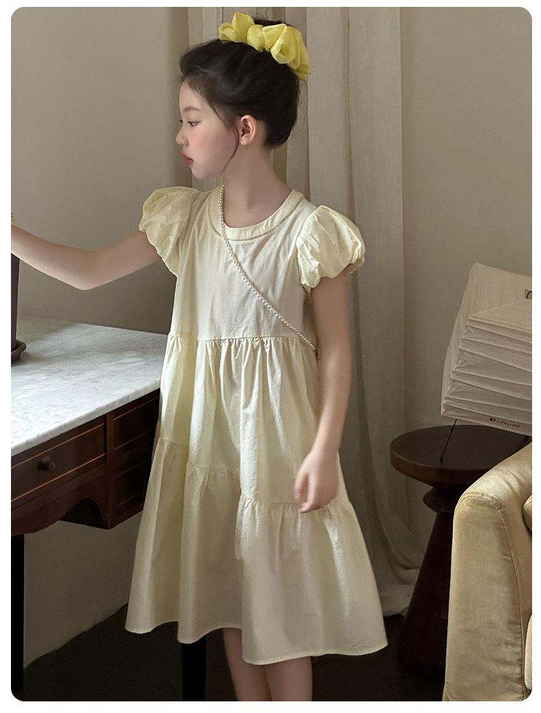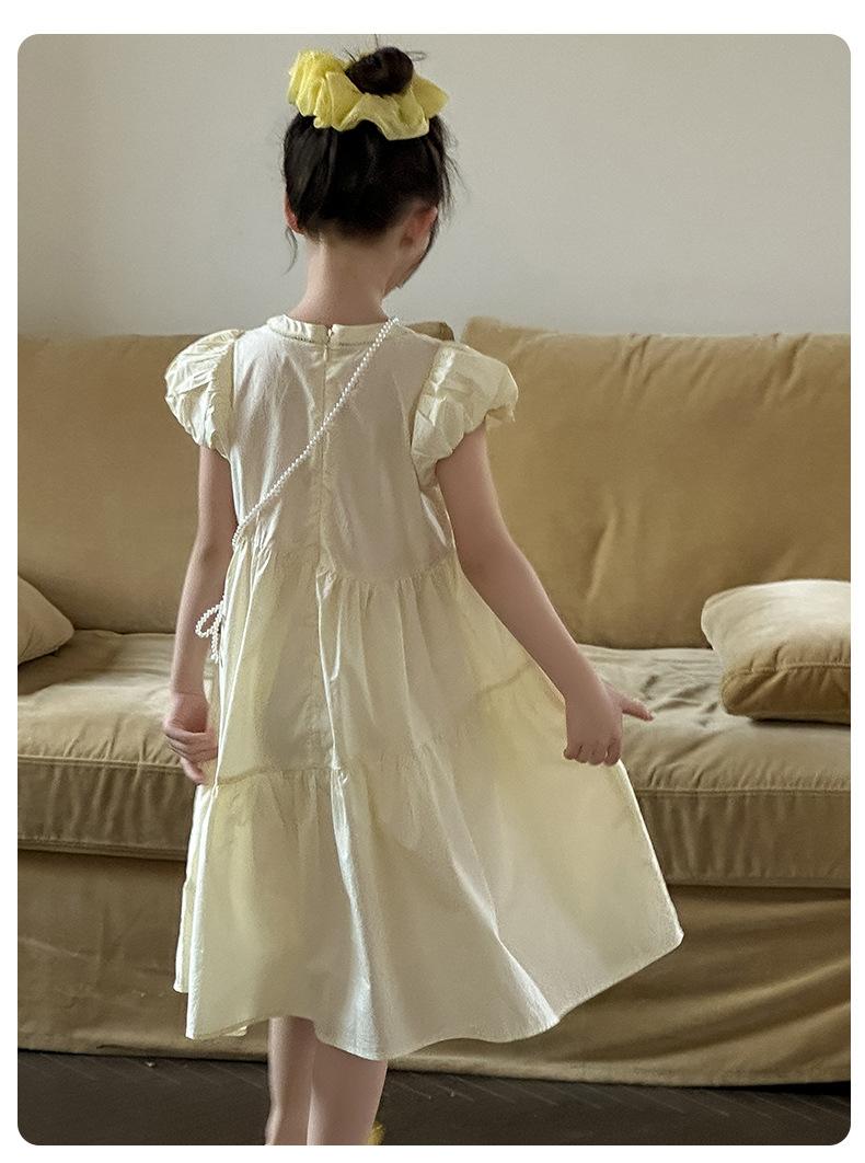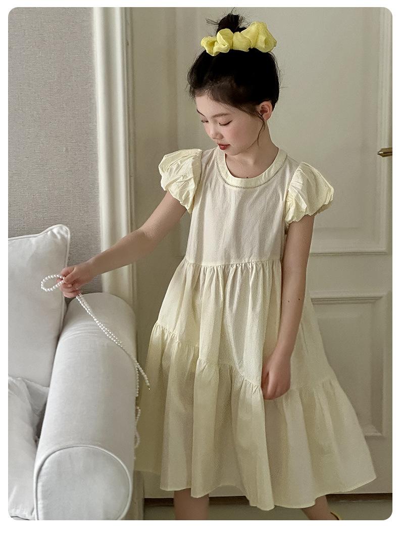 Vestido de Niña Verano 2025 Nuevo Estilo Coreano Vestido de Algodón de Princesa para Niñas Vestido de Alta Gama de Manga Abullonada