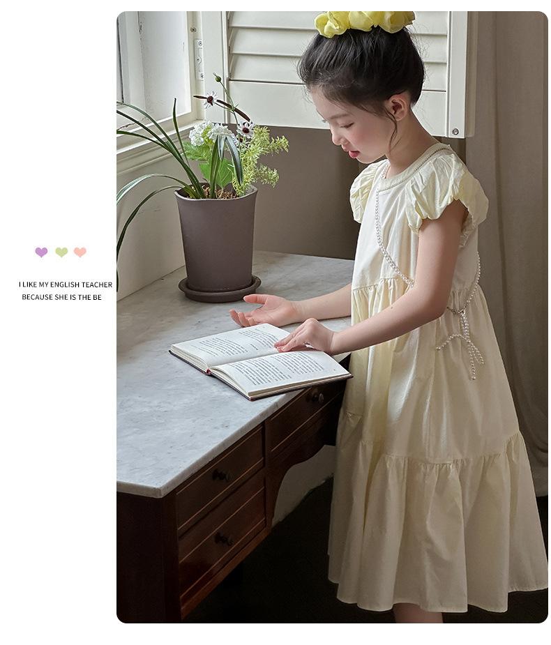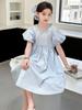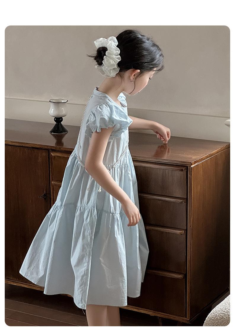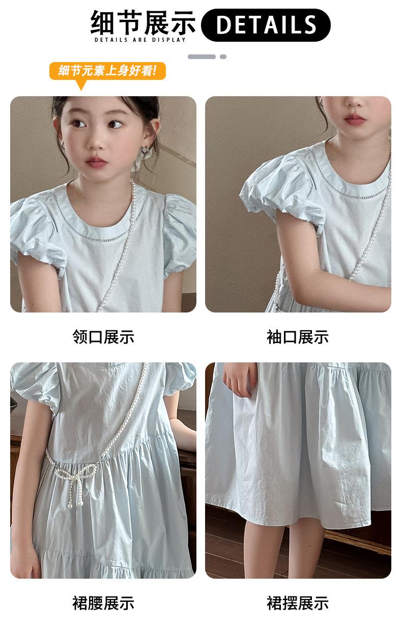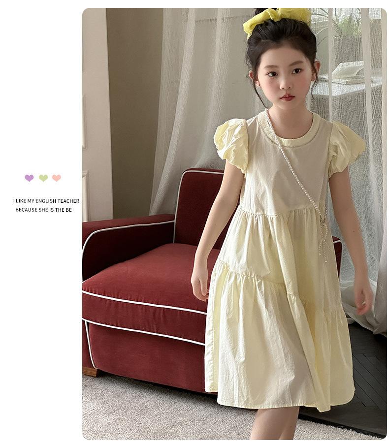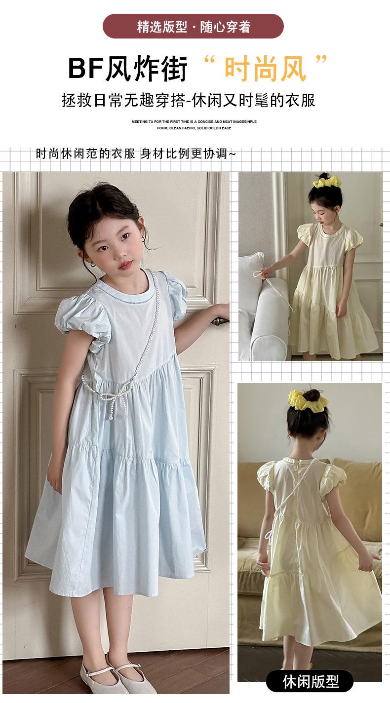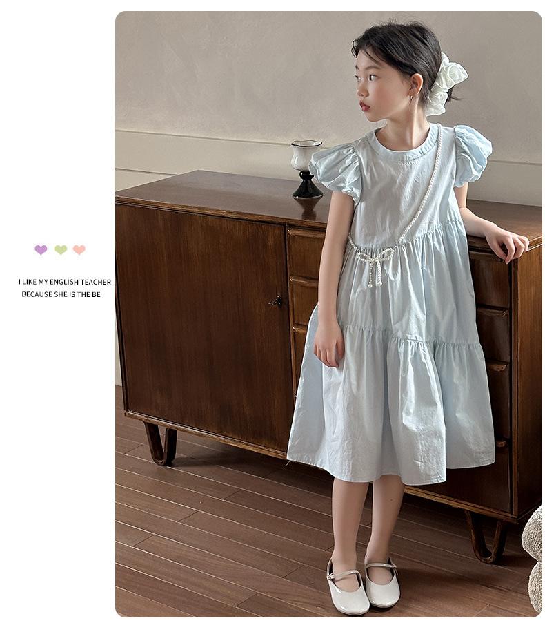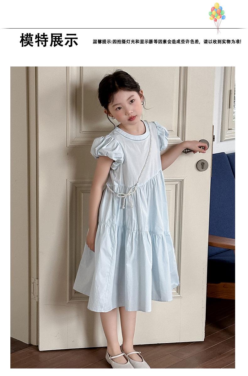 Vestido de Niña Verano 2025 Nuevo Estilo Coreano Vestido de Algodón de Princesa para Niñas Vestido de Alta Gama de Manga Abullonada