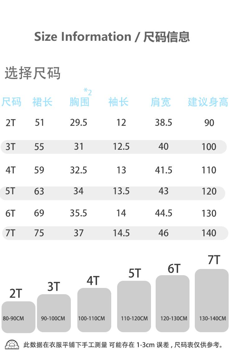 2T/90cm, 3T/100cm, 4T/110cm, 5T/120cm, 6T/130cm, 7T/140cm