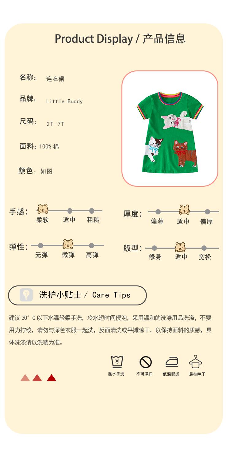 Nuevo Vestido Littlebuddy para Niñas Transfronterizo, Vestido de Manga Corta para Niñas para Primavera, Estilo Europeo y Americano para Niñas