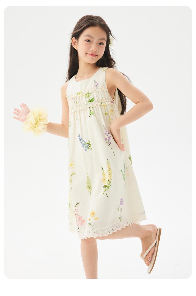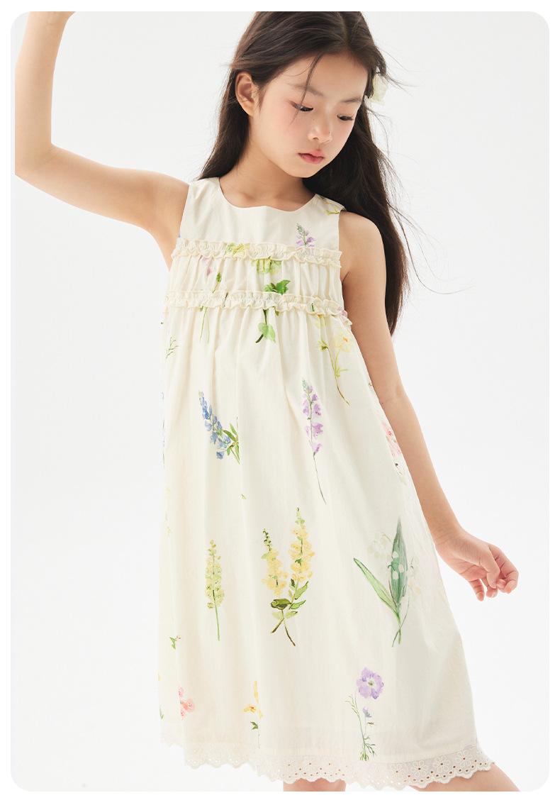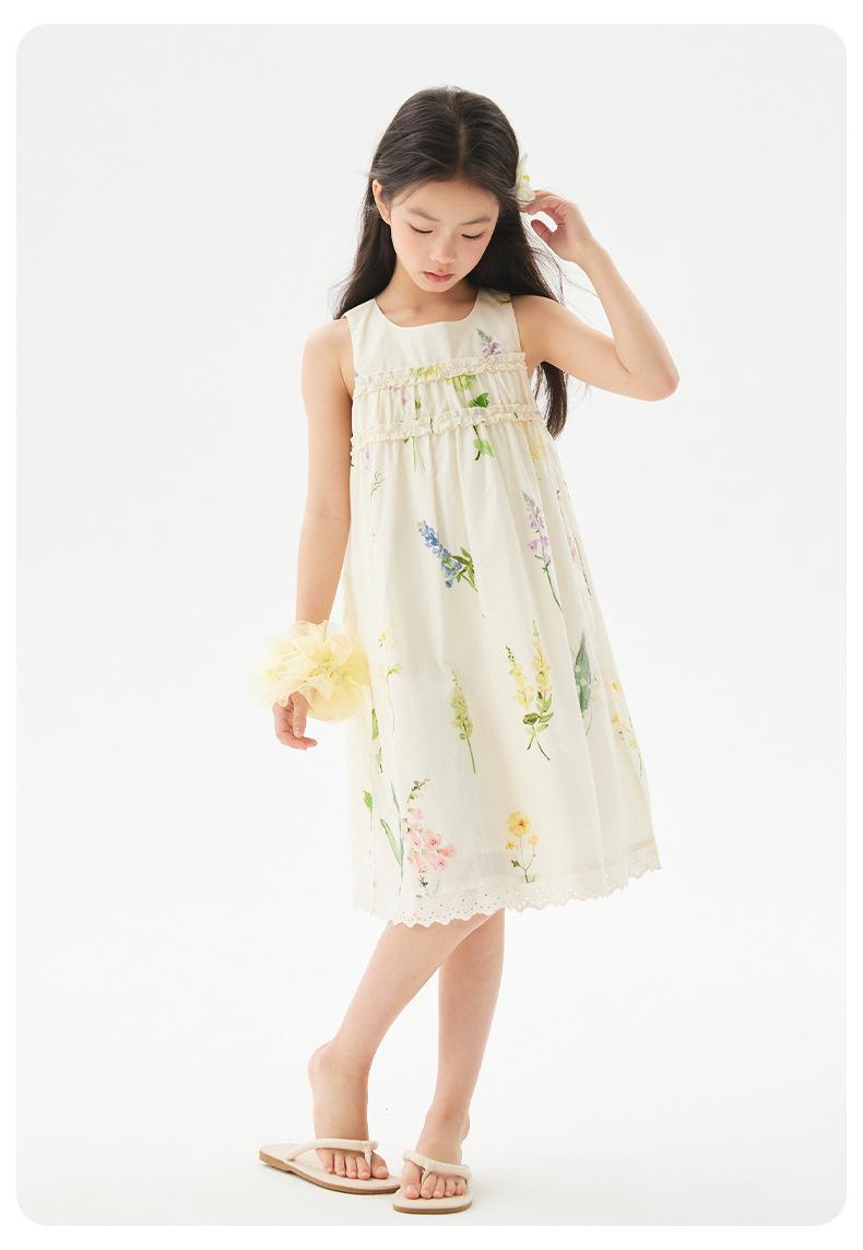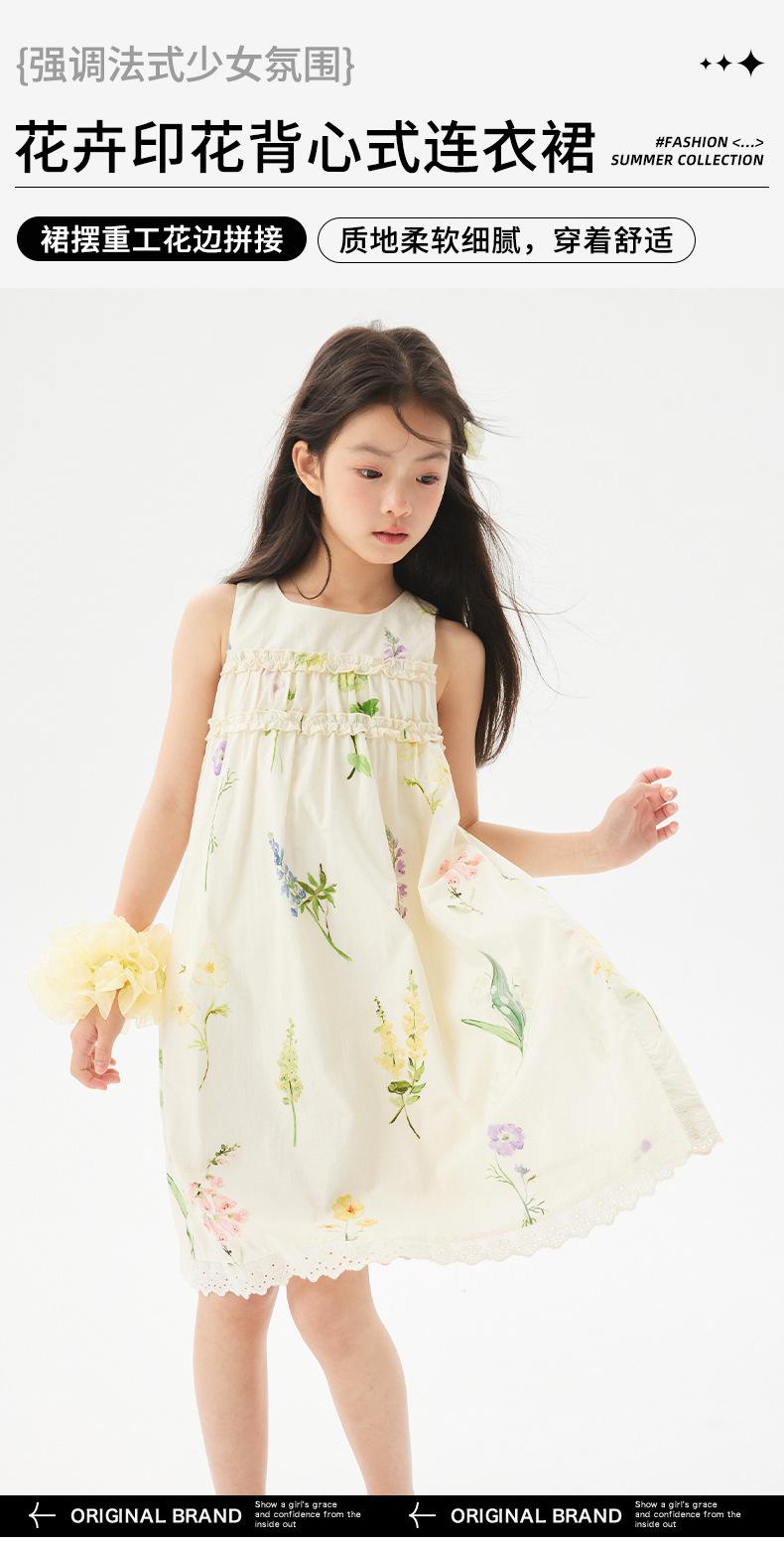 Vestido sin mangas estilo francés para niñas 2025 Verano Nuevo Vestido casual delgado de princesa para niños Vestido de moda para niños medianos y grandes
