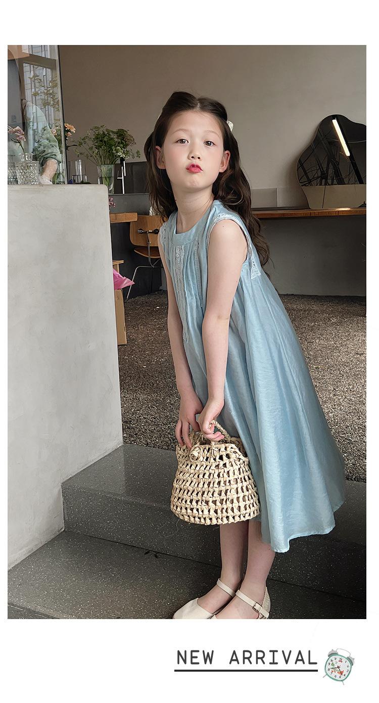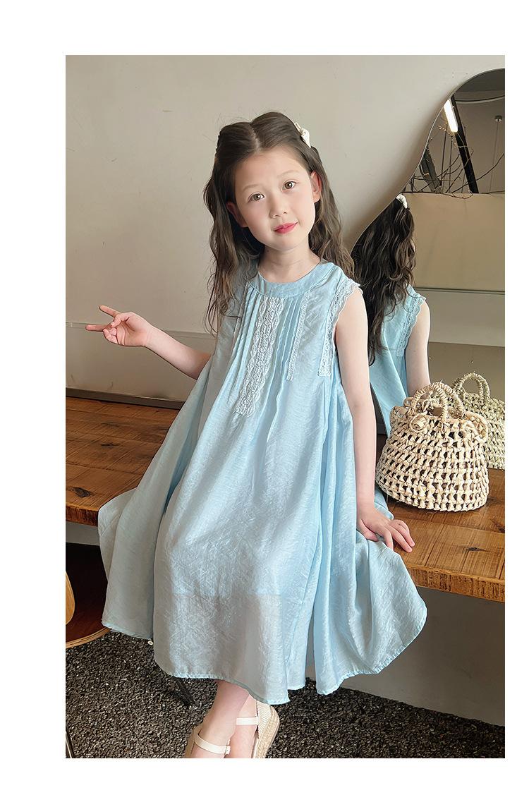 Vestido Fresco y Suave para Niñas Vestido Vessal Estilo Occidental para Niños Vestido de Princesa para Niños Grandes Verano 2025 Nuevo Estilo