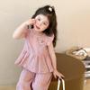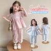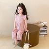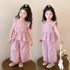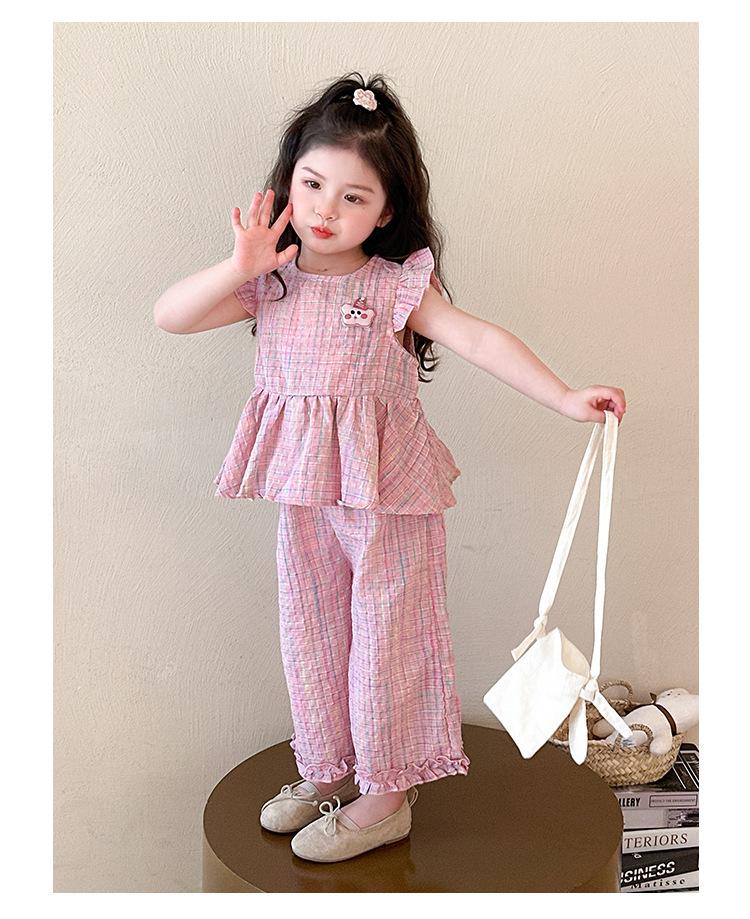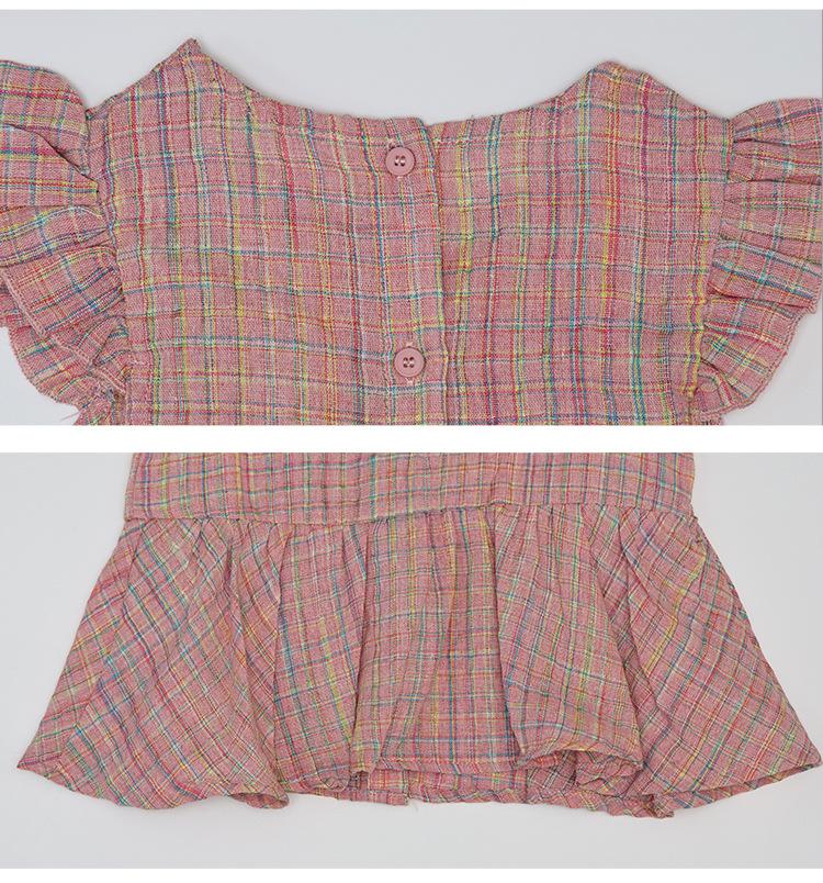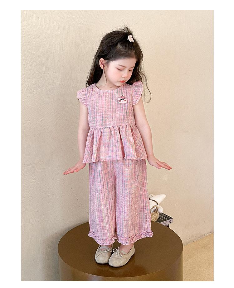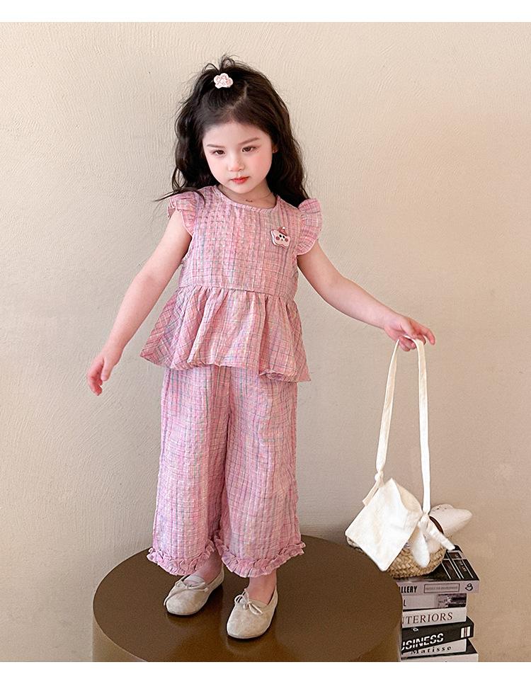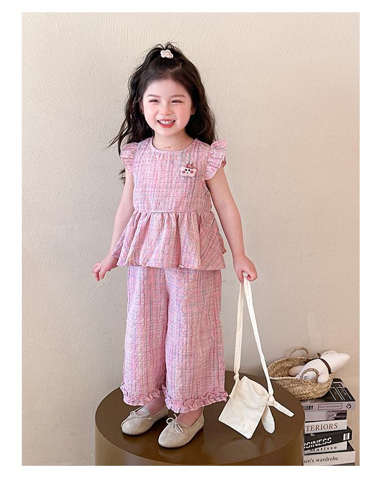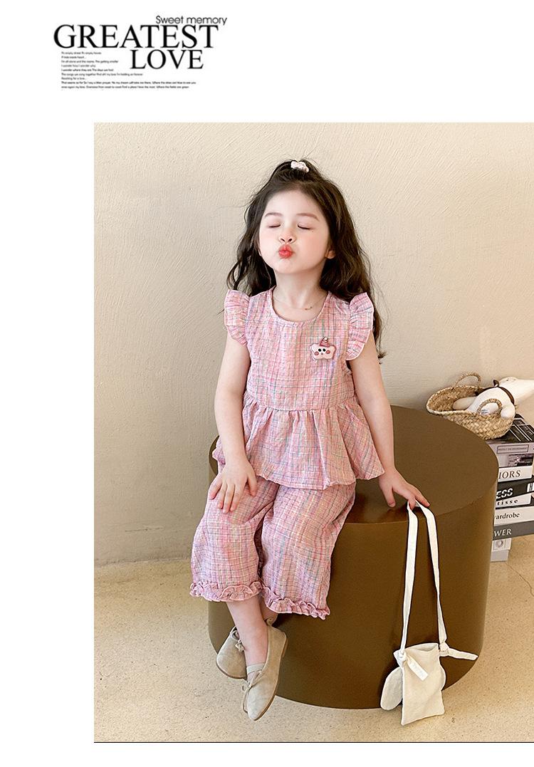 Traje de cuadros de manga volada para niña 2025 Verano Nueva Moda Niña Conjunto elegante de dos piezas Vestido de verano para niños pequeños y medianos