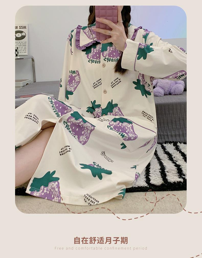 Nuevo vestido de maternidad de algodón puro primavera y otoño camisón de lactancia posparto verano pijama de maternidad delgado vestido largo de confinamiento
