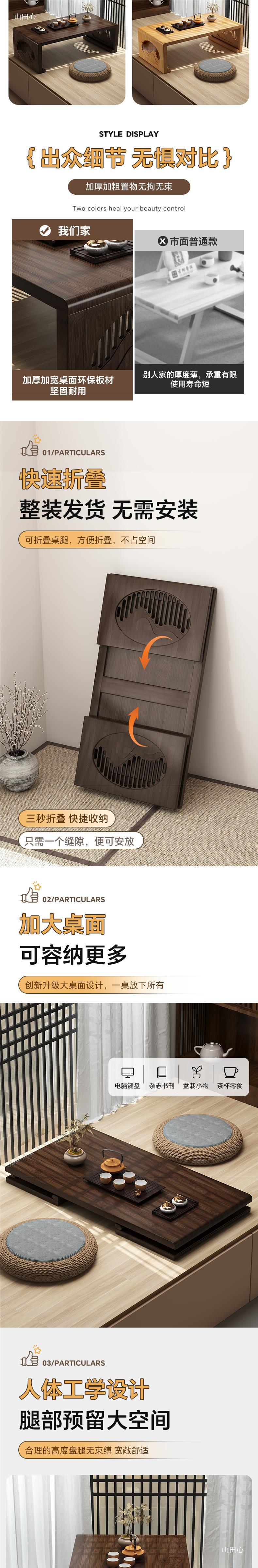 Mesa de Té Tatami Plegable, Mesa Pequeña de Ventana Mirador Estilo Antiguo, Mesa Kang de Suelo para Dormitorio, Mesa Baja China Creativa de Madera Maciza para Balcón