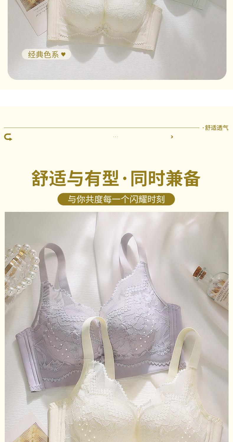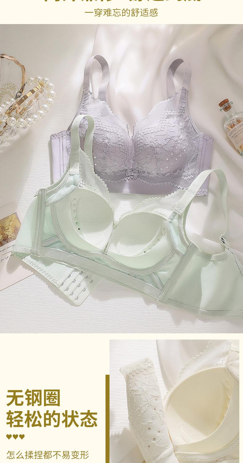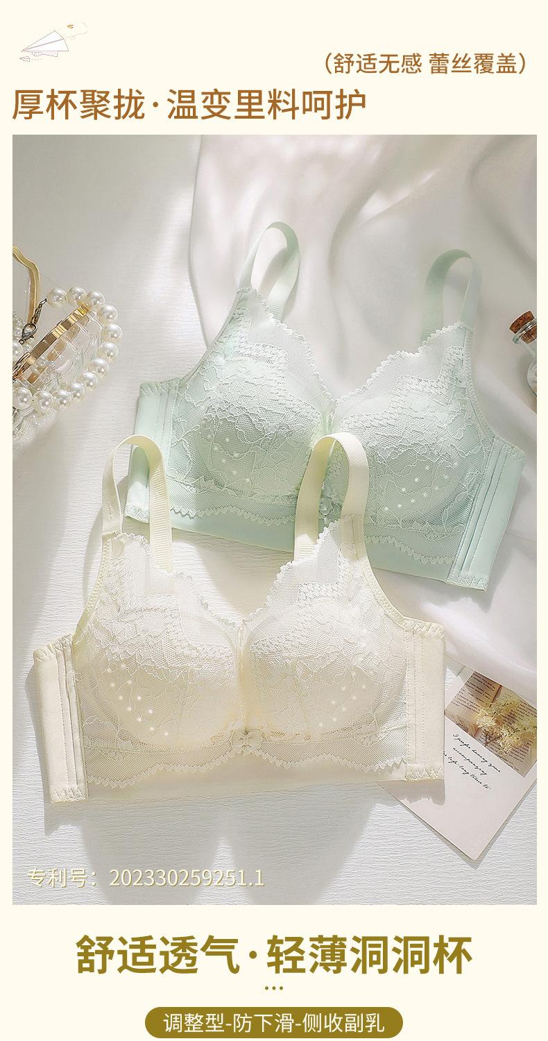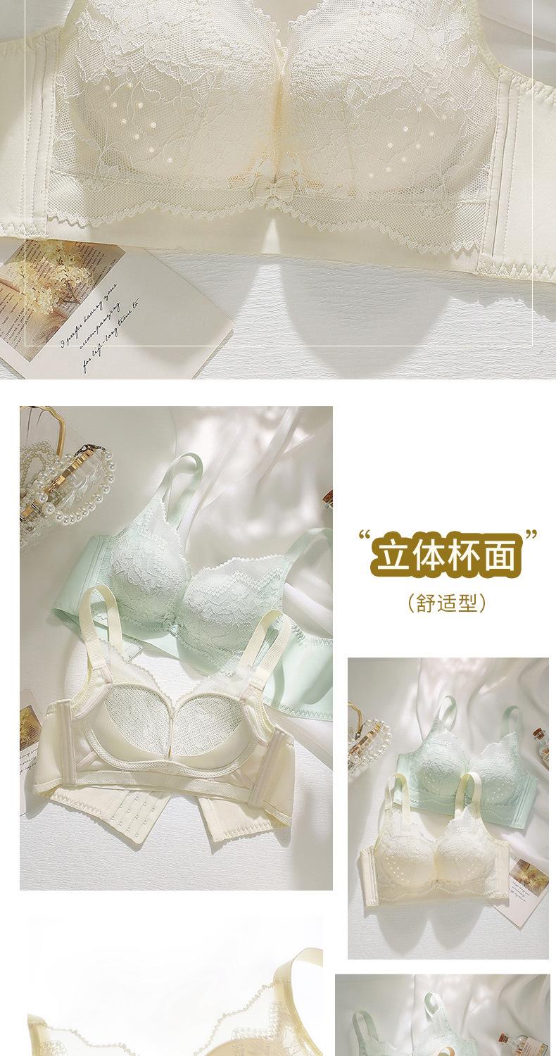 Ropa interior ajustable de encaje francés para mujer, sin costuras, push-up, anti-caída, con aros, copa con orificios transpirables -1