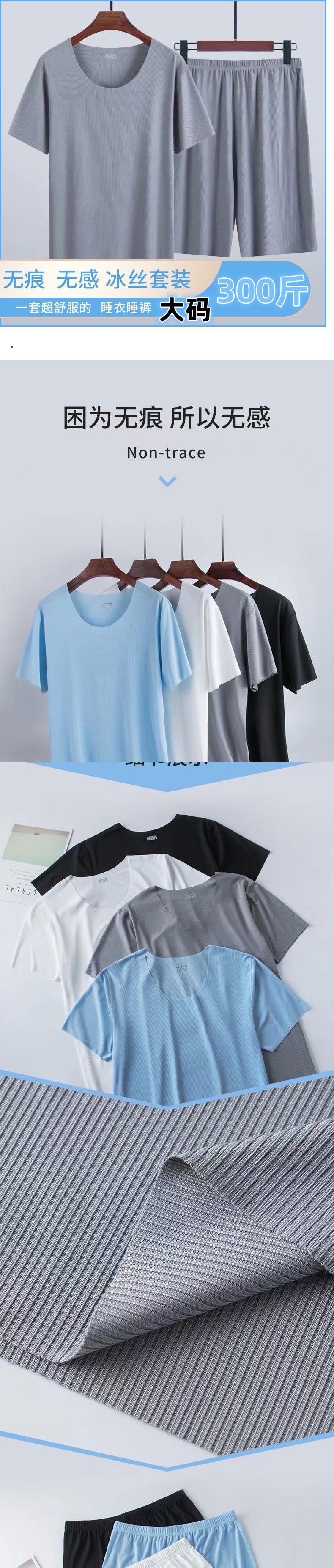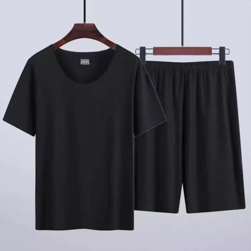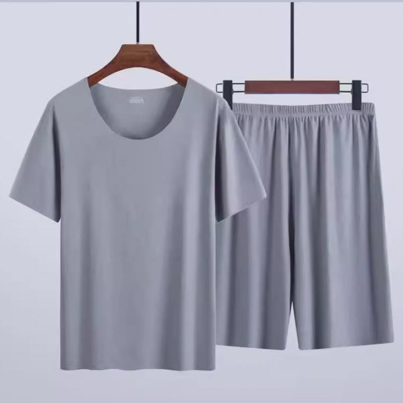 Men's ice silk suit [short sleeves + shorts] black, Men's ice silk suit [short sleeves + shorts] gray, Men's i...