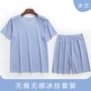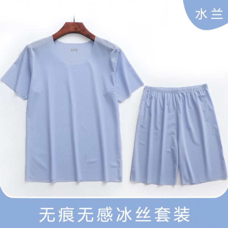 Men's ice silk suit [short sleeves + shorts] aqua blue