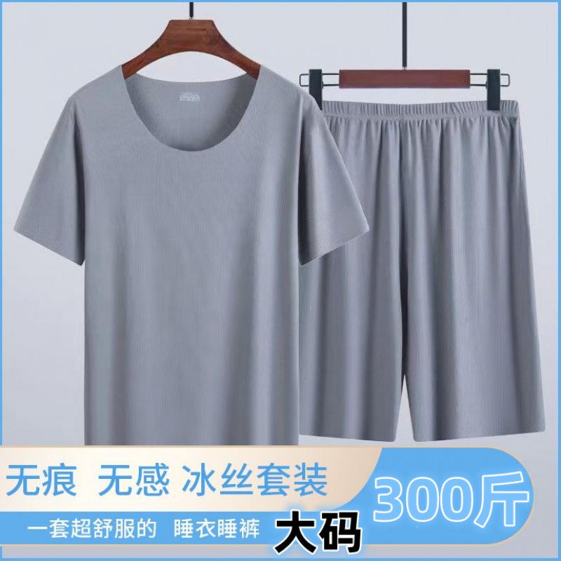 Traje de Hombre de Seda de Hielo Talla Extra Grande Delgado de Manga Corta Holgado Casual Ropa para el Hogar Shorts Pijama Conjunto de Dos Piezas Plus Gordo Plus