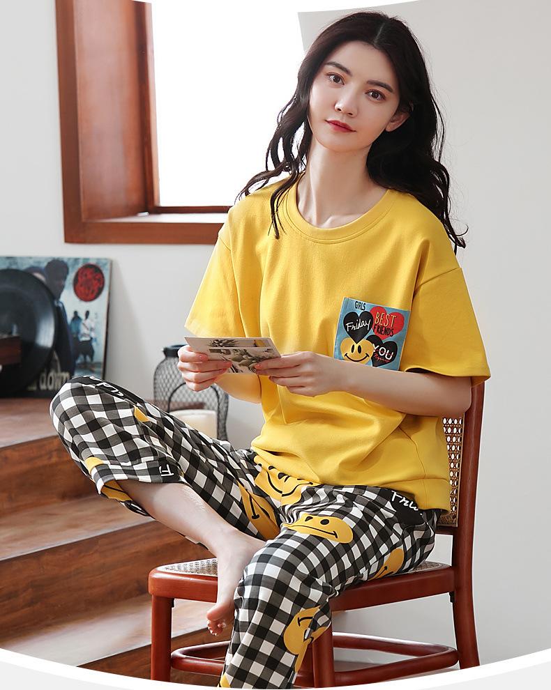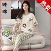 2025 Nuevo Verano Popular Casual Delgado Pijama Pantalones de Verano para Mujer Manga Corta Algodón Conjunto de Ropa de Casa para Mujer