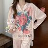 Pijama dulce floral estilo Ins para mujer Primavera y Otoño Nuevo de alta gama Pantalones de manga larga Se puede usar fuera Conjunto de ropa para el hogar