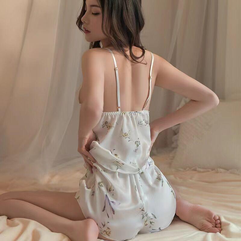 Chao Mu Lencería Sexy para Mujer Sexy Caliente Encaje Escote en V Profundo Pijama de Tirantes Deseo Puro Shorts Traje de Dos Piezas