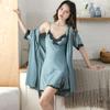 Pijamas Sexy de Verano para Mujer, Camisón de Tirantes de Seda de Hielo para Primavera y Otoño, Camisón de Seda de Manga Corta, Traje Delgado de Dos Piezas con Almohadillas para el Busto