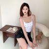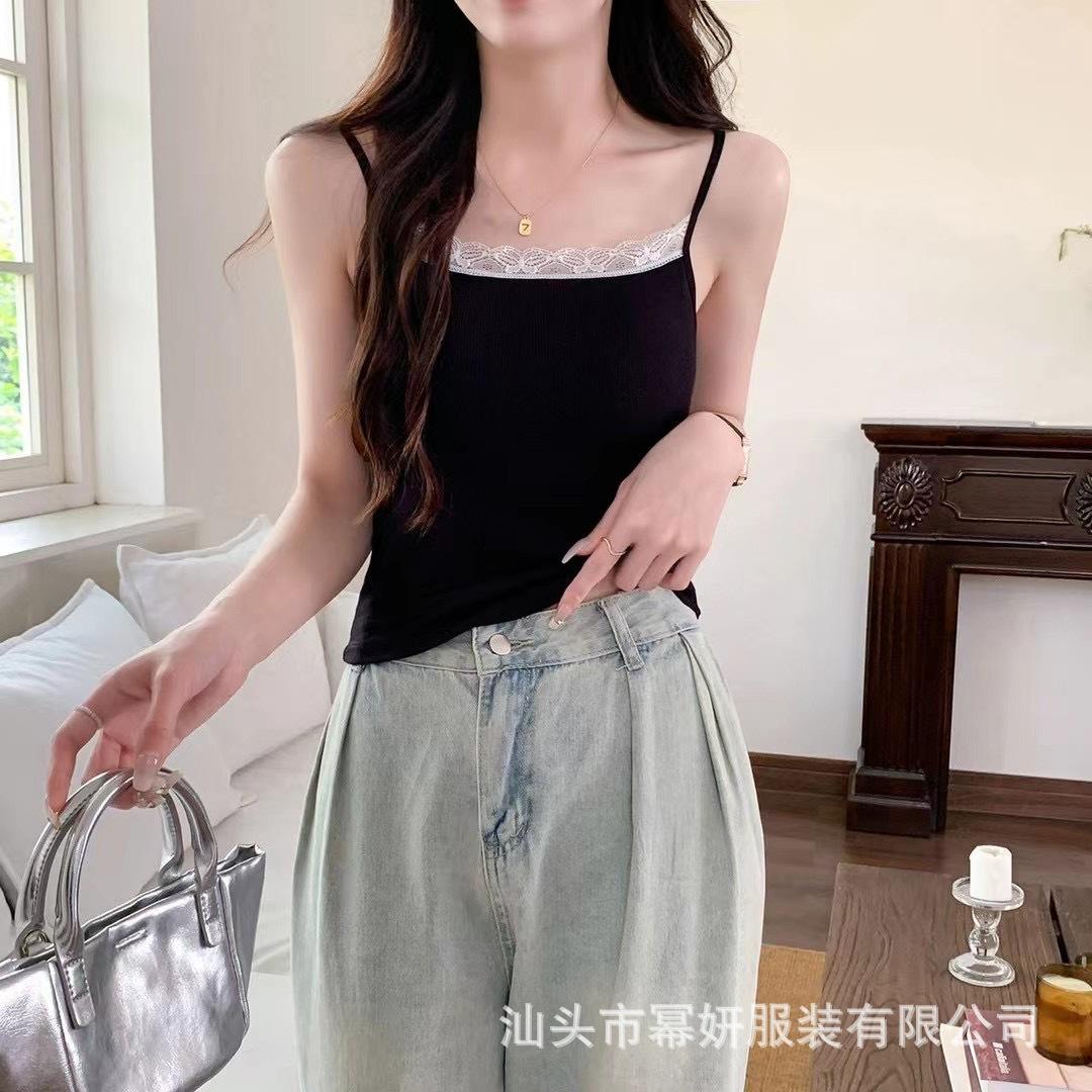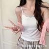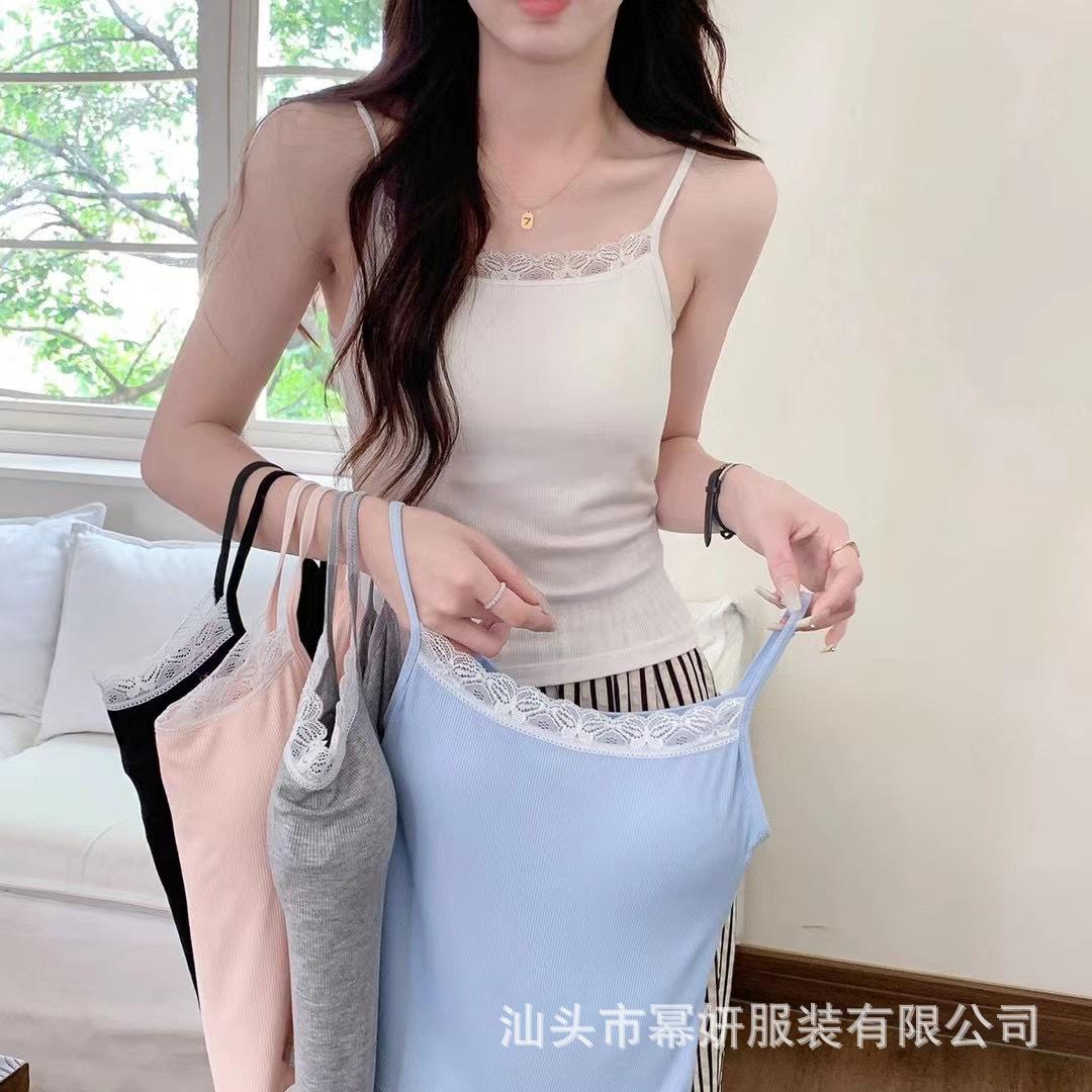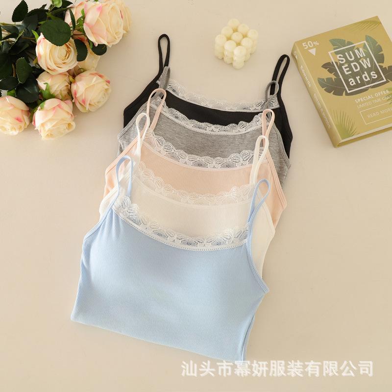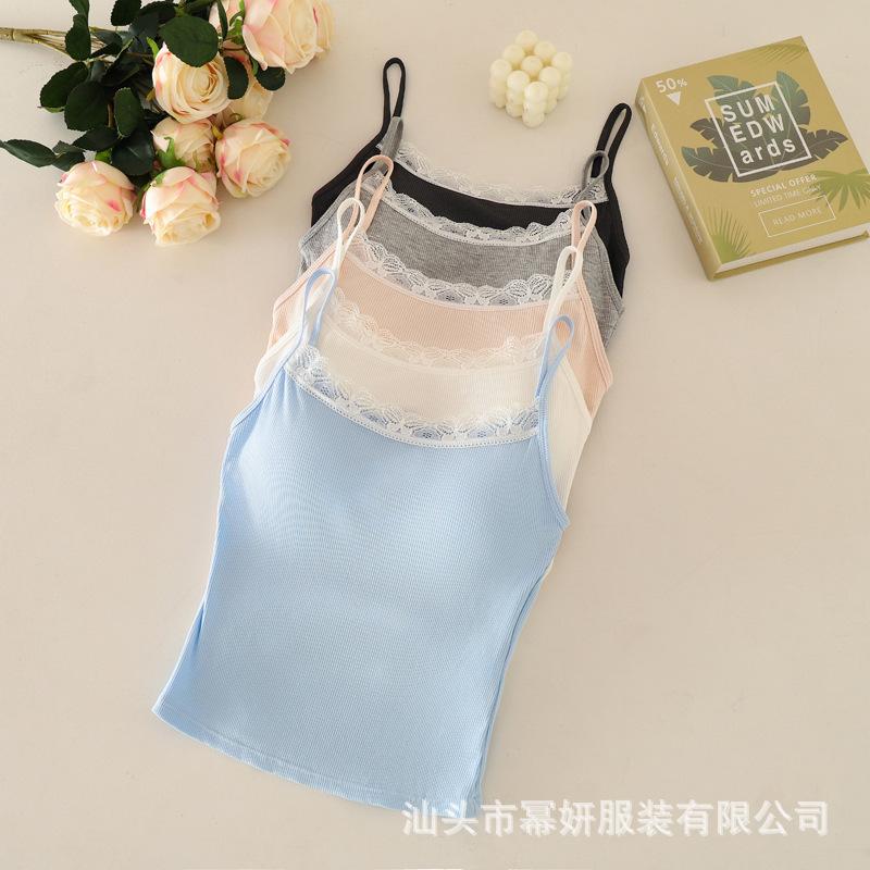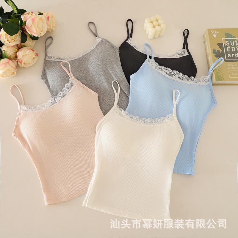 Estilo Deseo Puro Encaje Algodón Tirante Pequeño Color Sólido Chaleco Interior para Mujer Cómodo Combinable Camiseta Base Top con Almohadilla en el Pecho