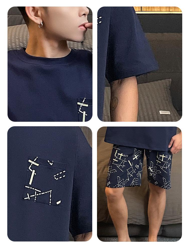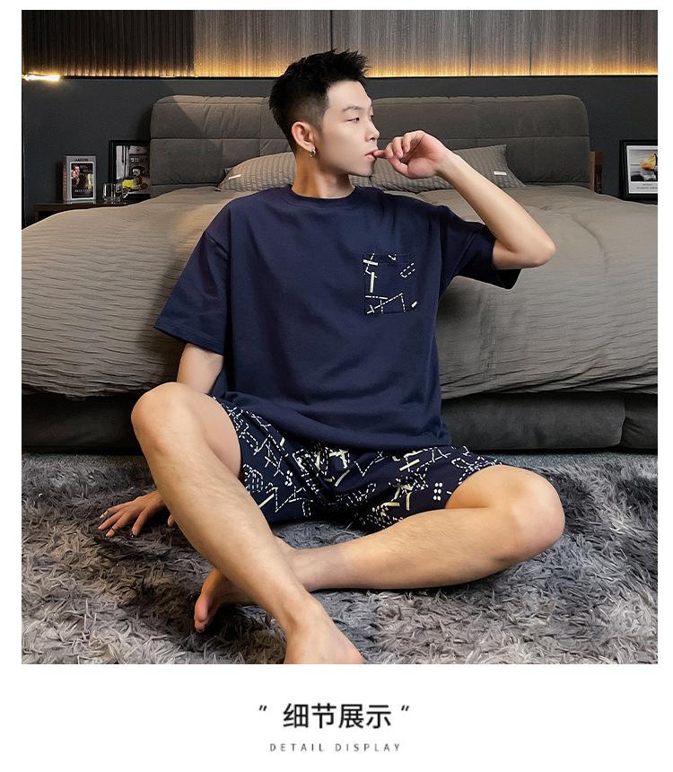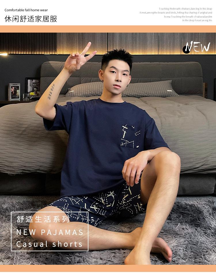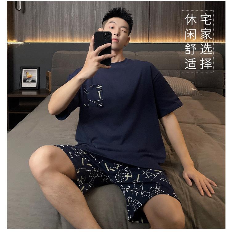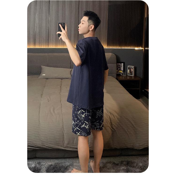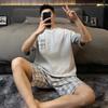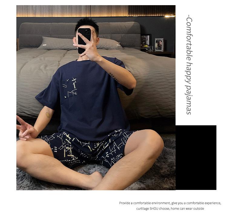 Pijama para hombre Verano 2025 Nuevo Traje de pantalones cortos de manga corta Suelto Sencillo Casual Ropa para el hogar de estudiante Se puede usar fuera