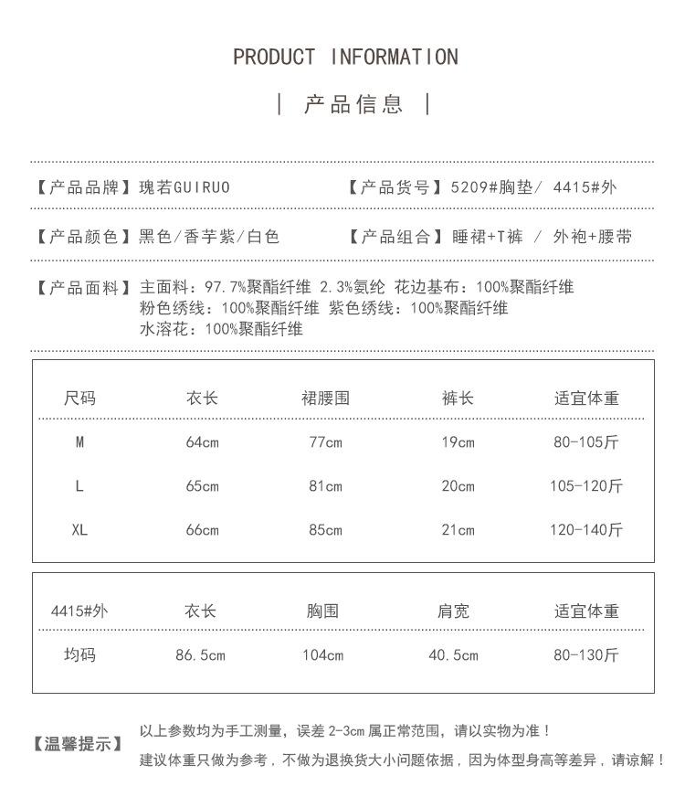 5209 black (nightgown + t pants), 4415 black (robe + belt), 5209 white (nightgown + t pants), 4415 white (robe...