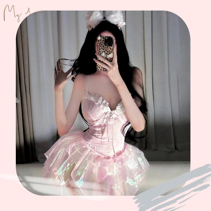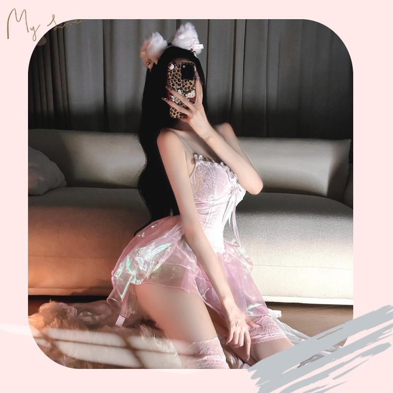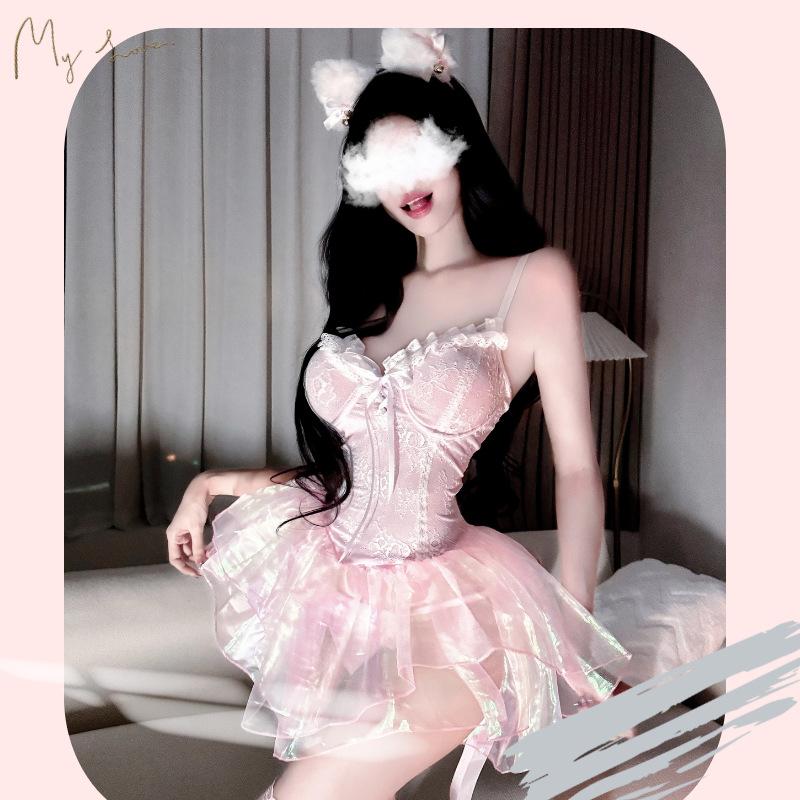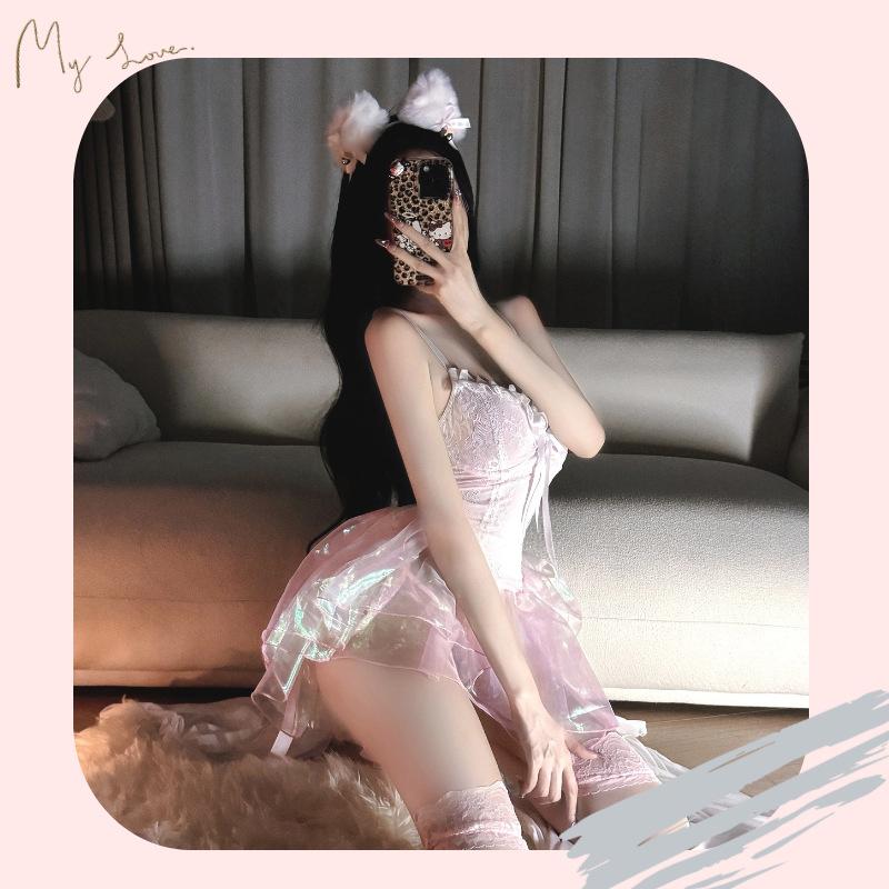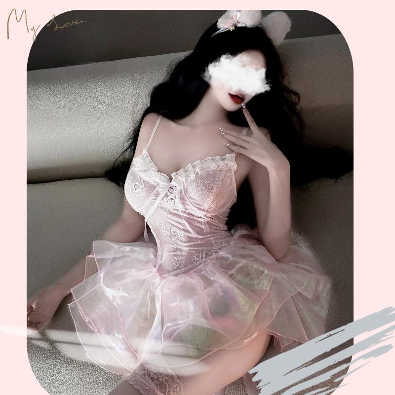 Ropa Interior Sexy Malla Pasión Perspectiva Tentación Sexy Princesa Deseo Puro Pijama Rosa Provocación Traje Libre