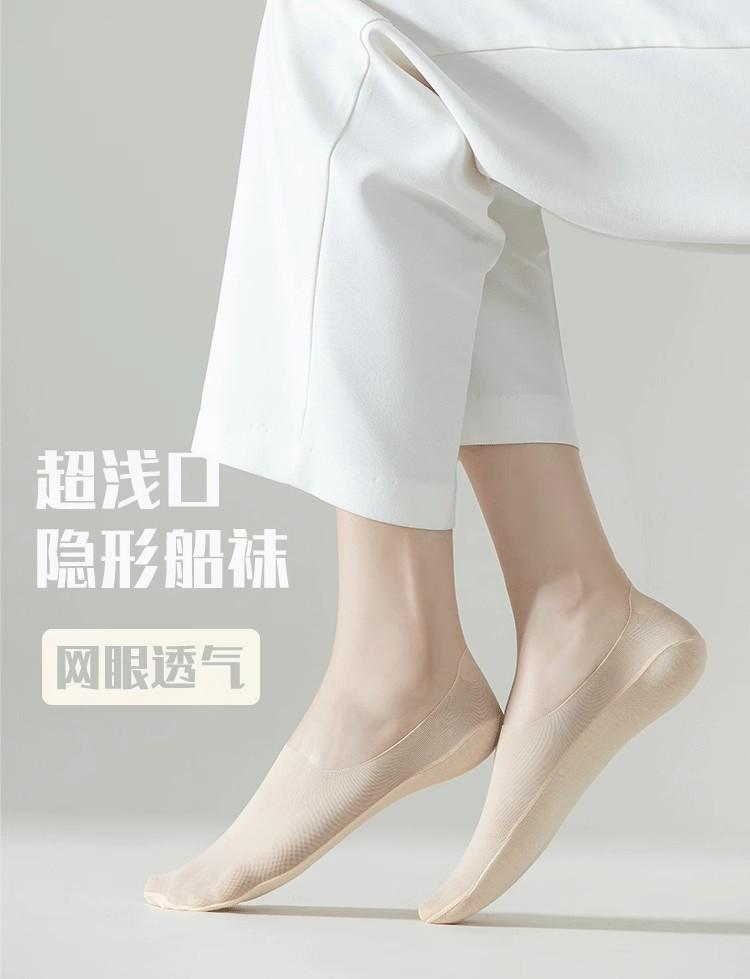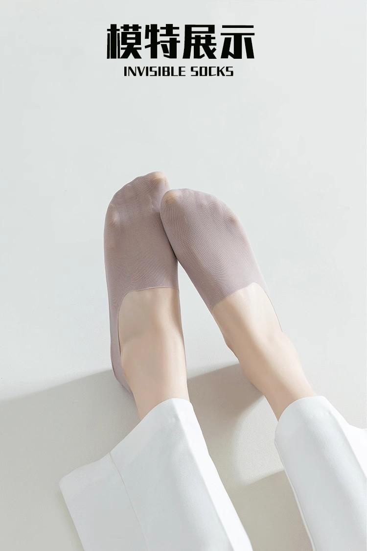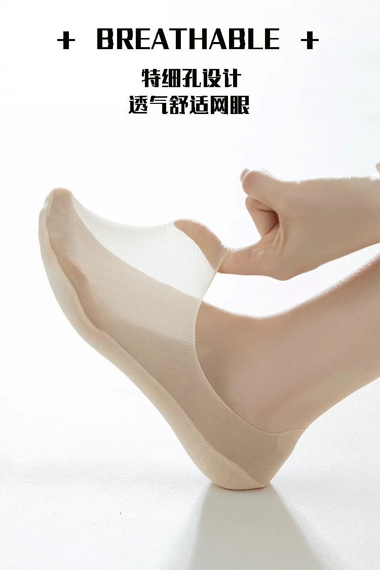 Calcetines de Seda de Hielo, Calcetines de Barco de Malla Transpirable Delgados de Verano para Mujer, Calcetines Bajos Invisibles que No se Caen, Calcetines Versátiles Antideslizantes de Silicona para Mujer