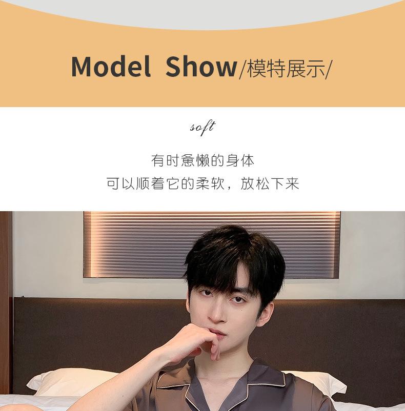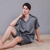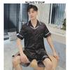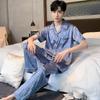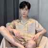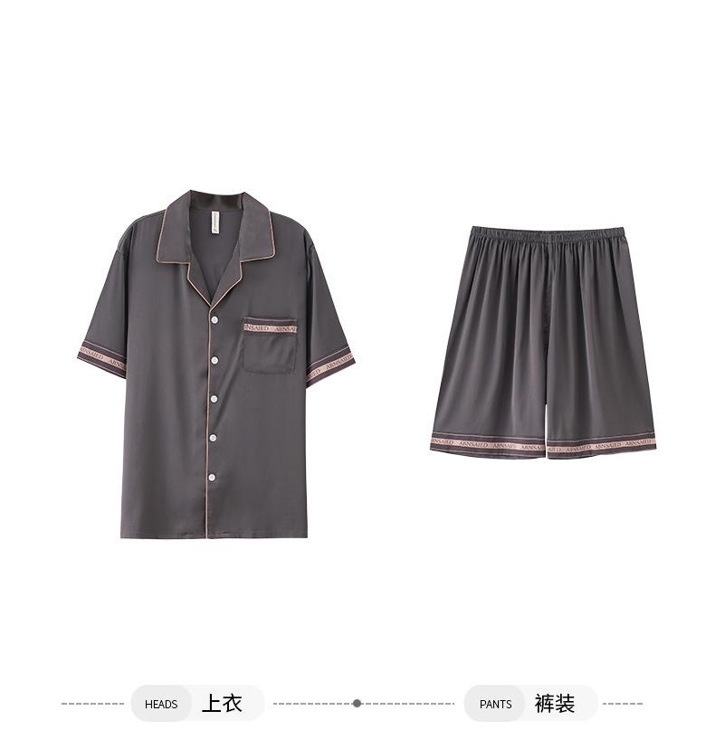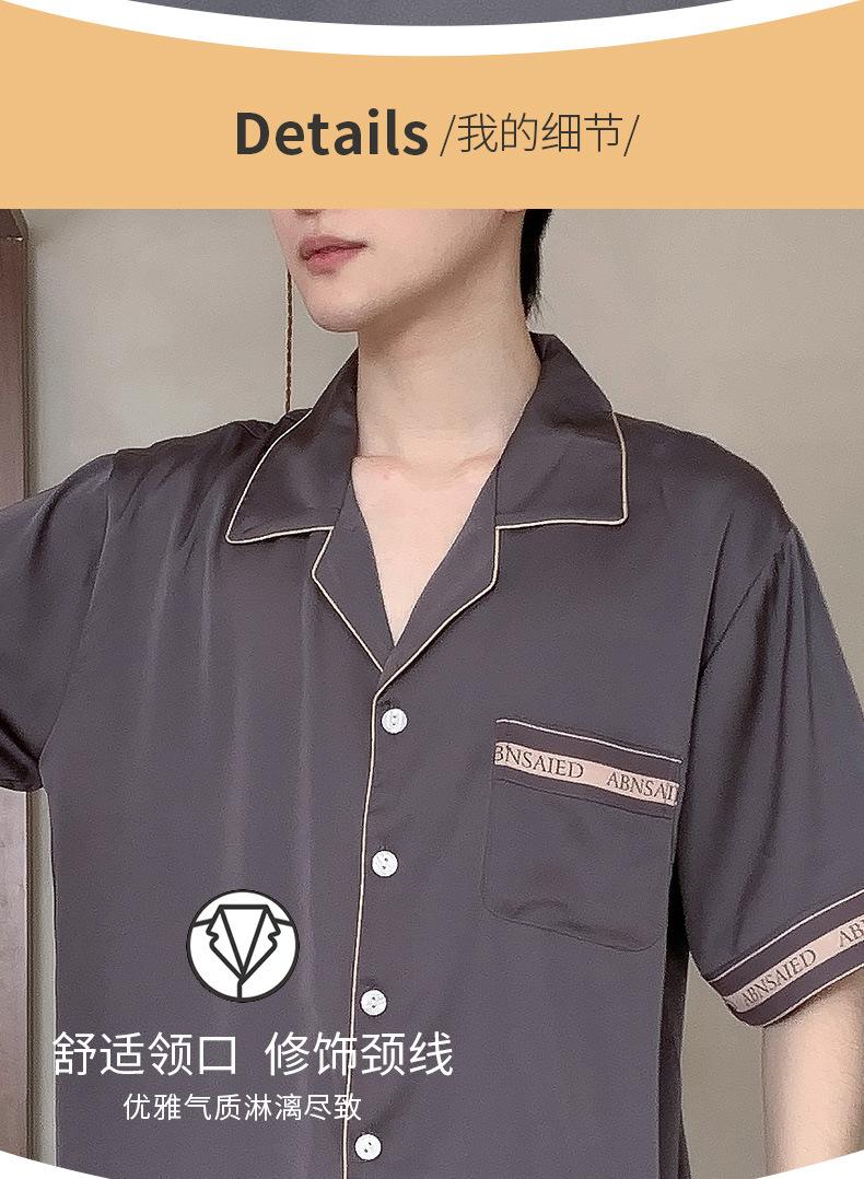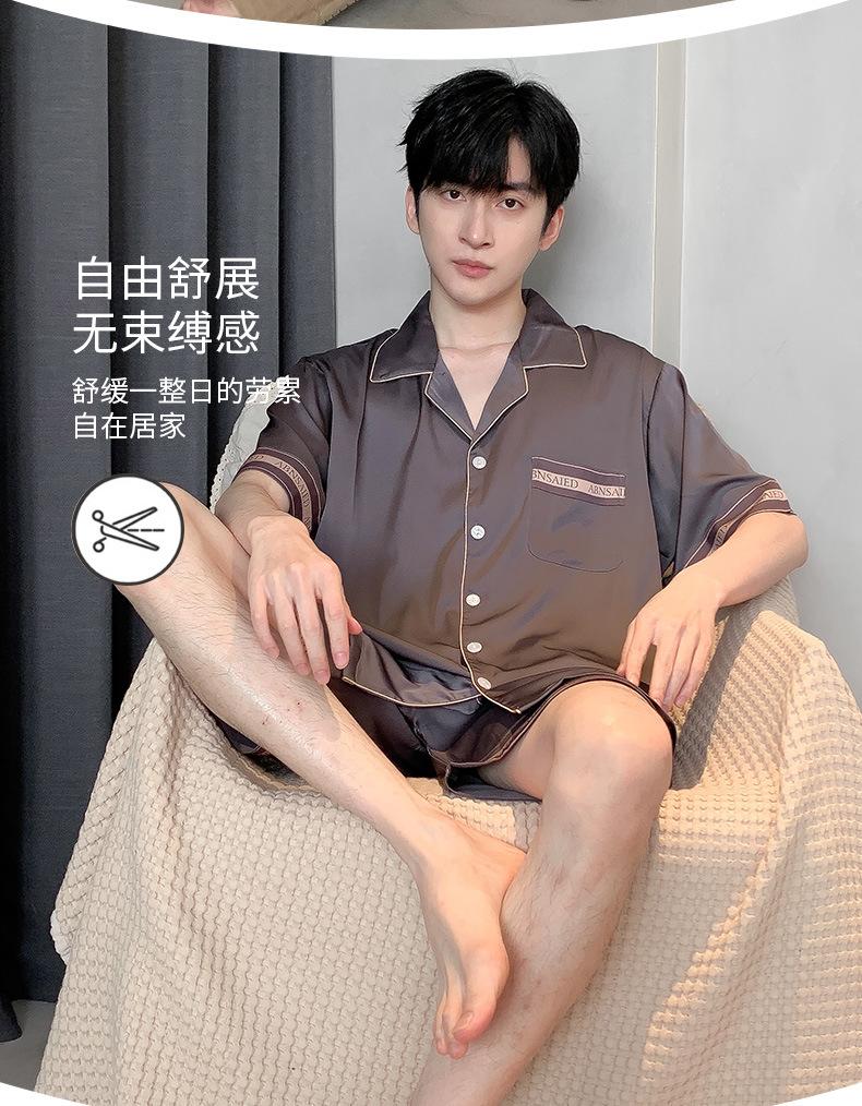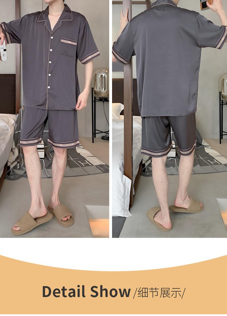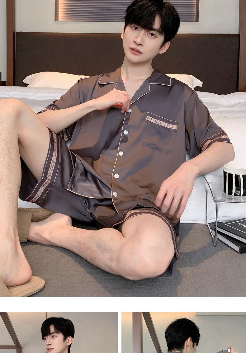 Pijama de Seda de Hielo para Hombre Verano Delgada Fresca Manga Corta Cárdigan Moda Sencillo Talla Grande Traje Ropa de Casa Hombre Verano