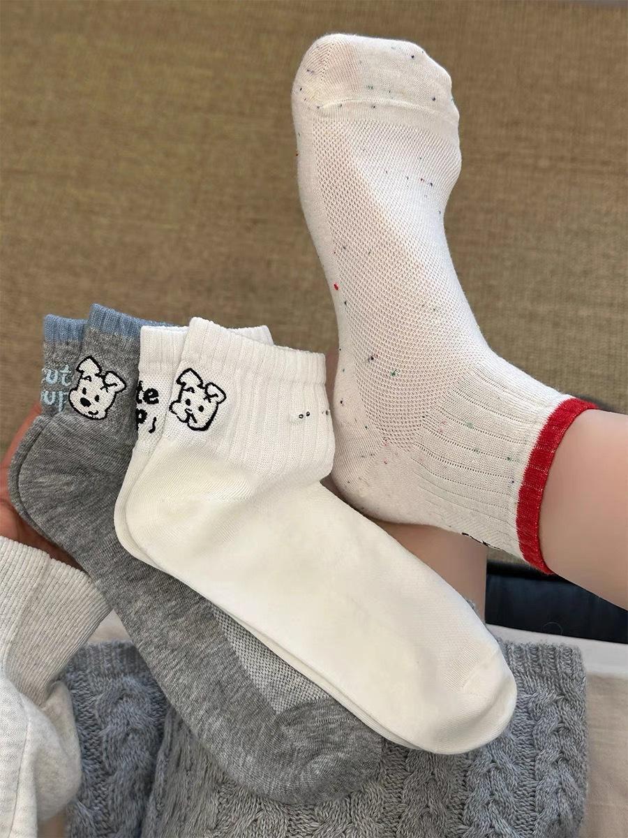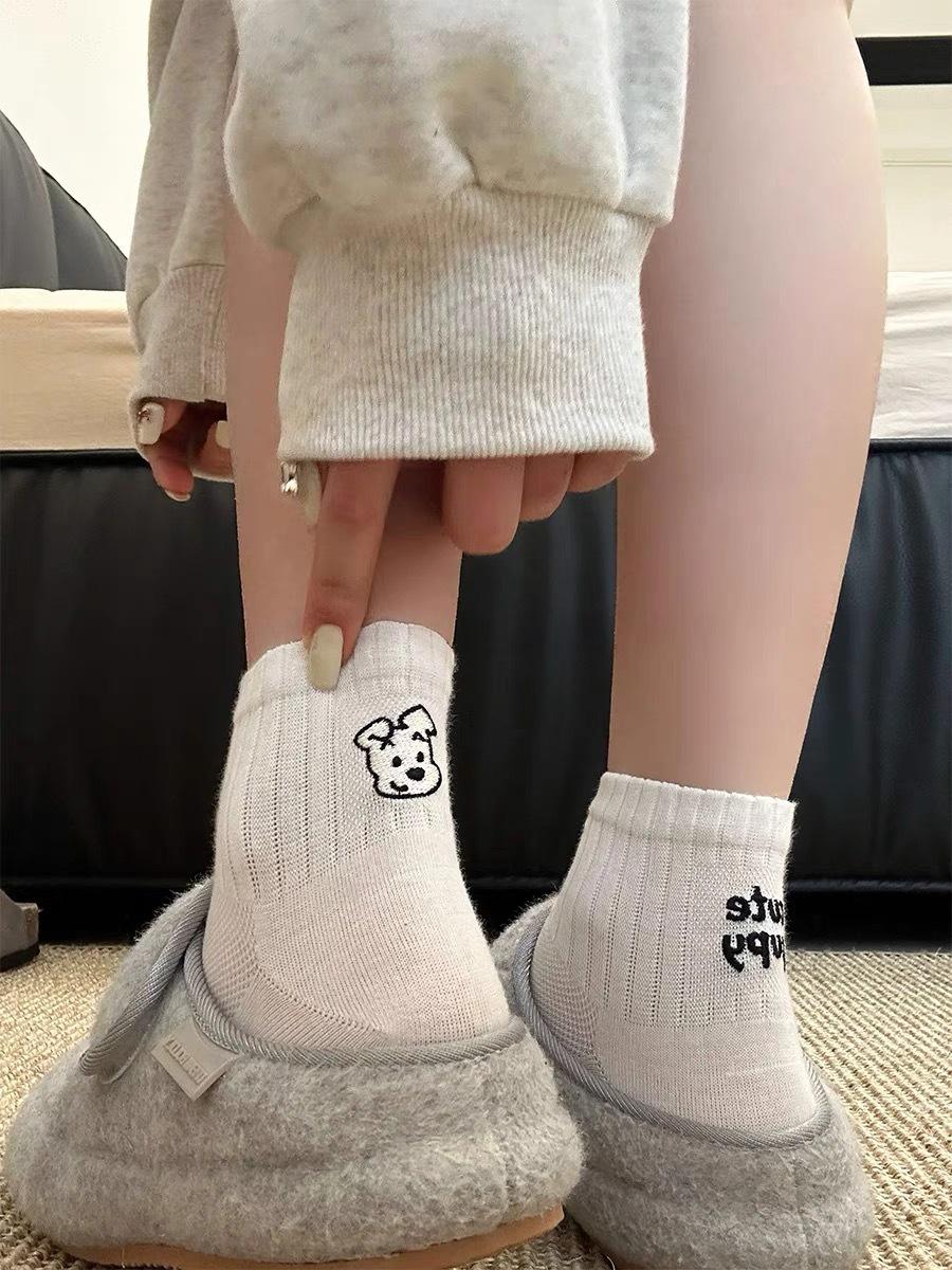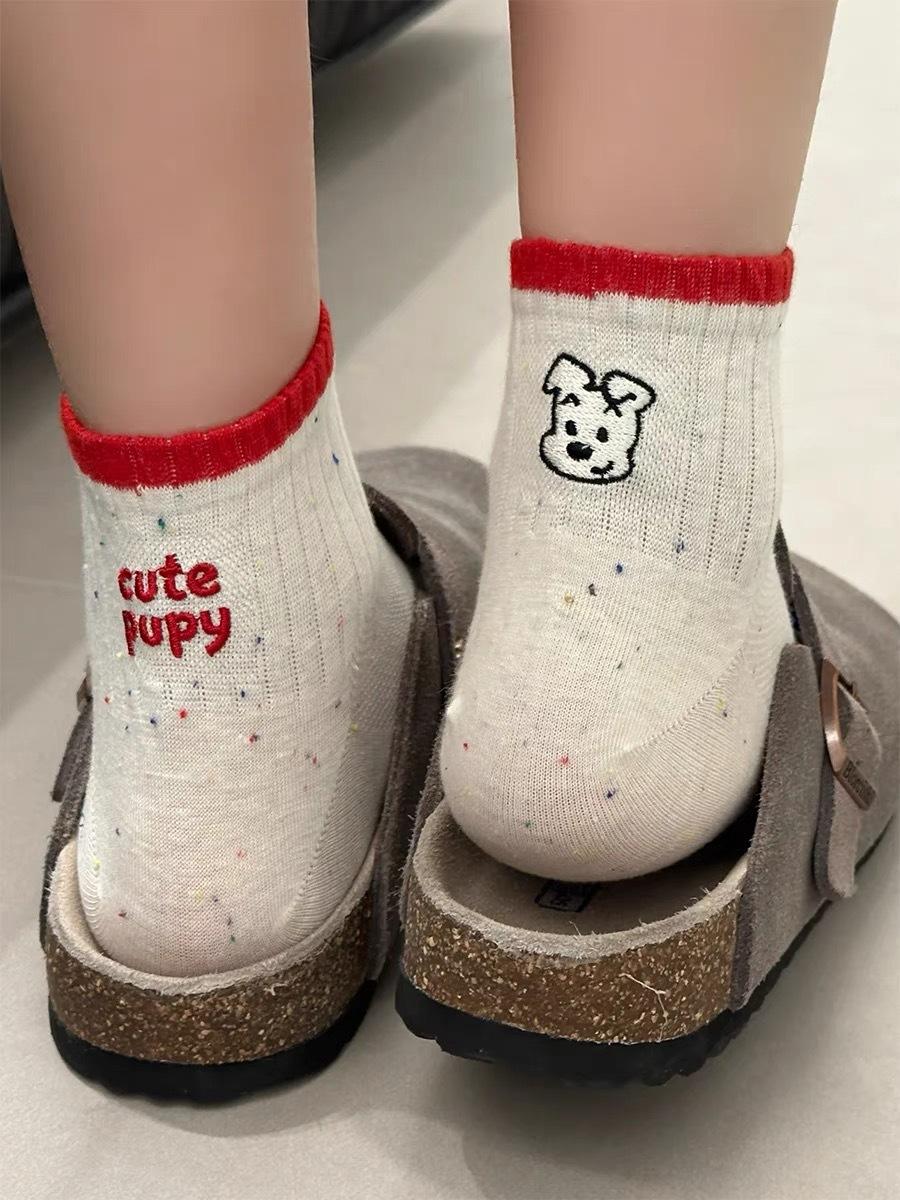 Calcetines de mujer primavera y verano calcetines de moda calcetines bordados de cachorro de dibujos animados calcetines de algodón lindos de estilo académico para mujer al por mayor