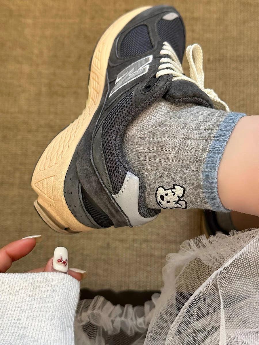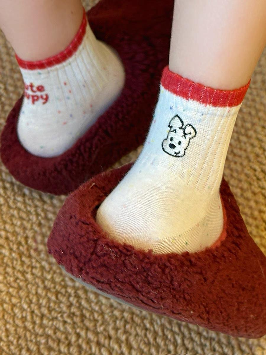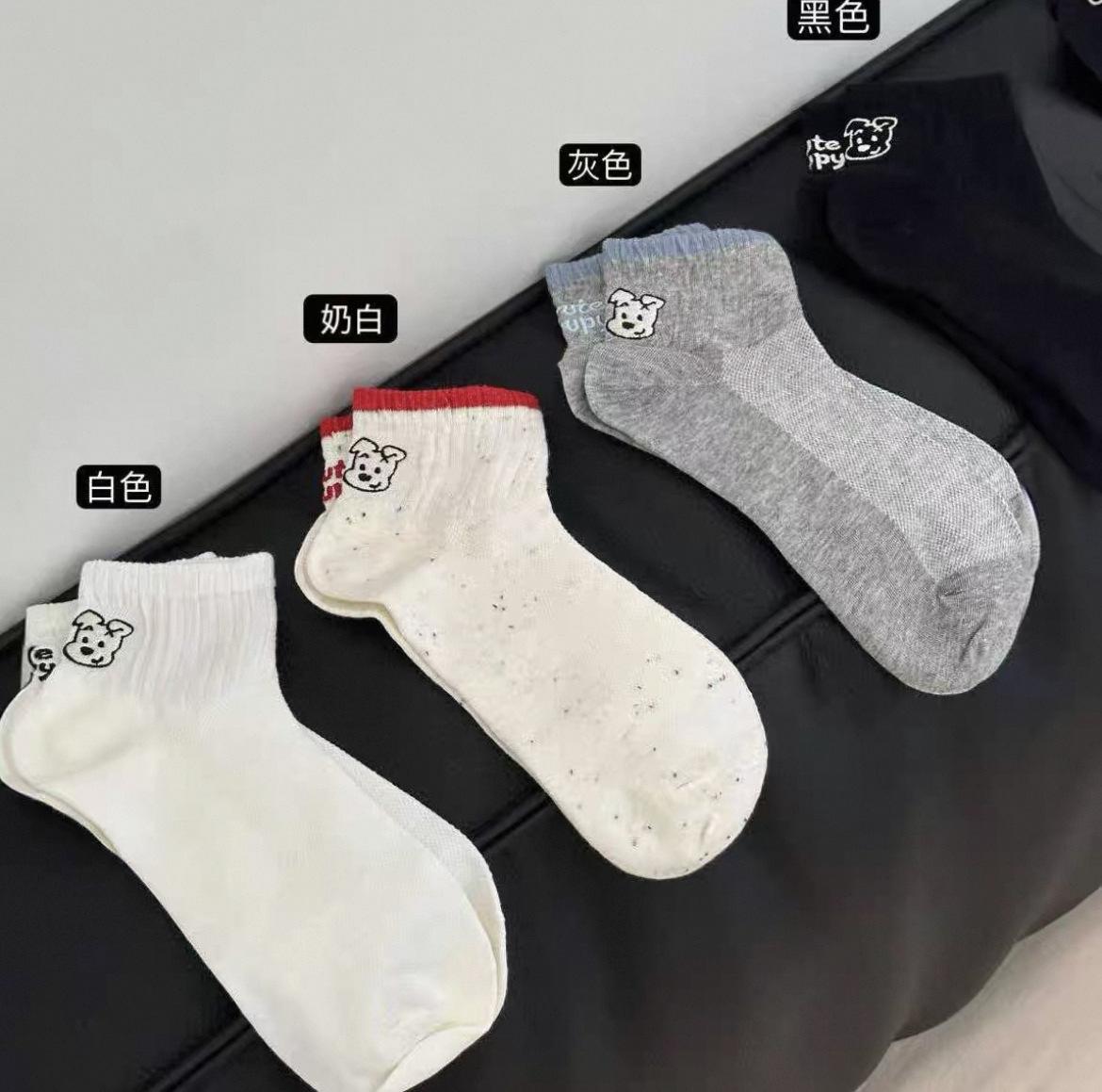 Calcetines de mujer primavera y verano calcetines de moda calcetines bordados de cachorro de dibujos animados calcetines de algodón lindos de estilo académico para mujer al por mayor