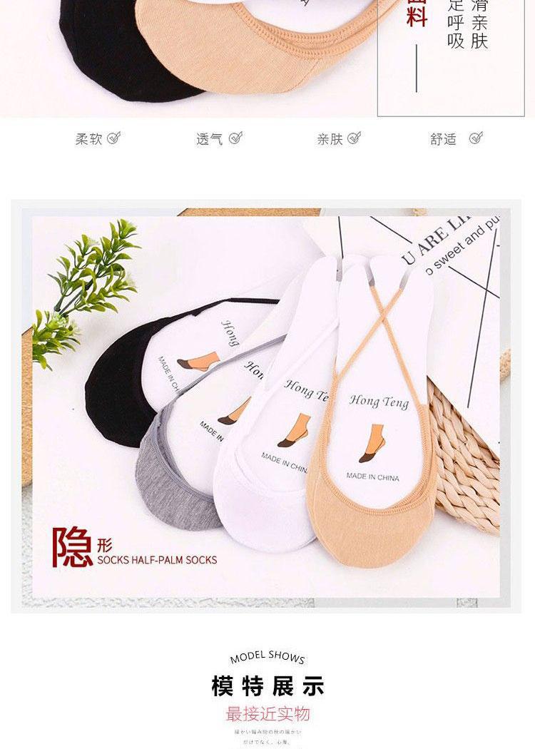 Calcetines al por mayor para dama de verano delgados de corte bajo para el antepié invisibles transpirables con tira antideslizante color sólido calcetines medios