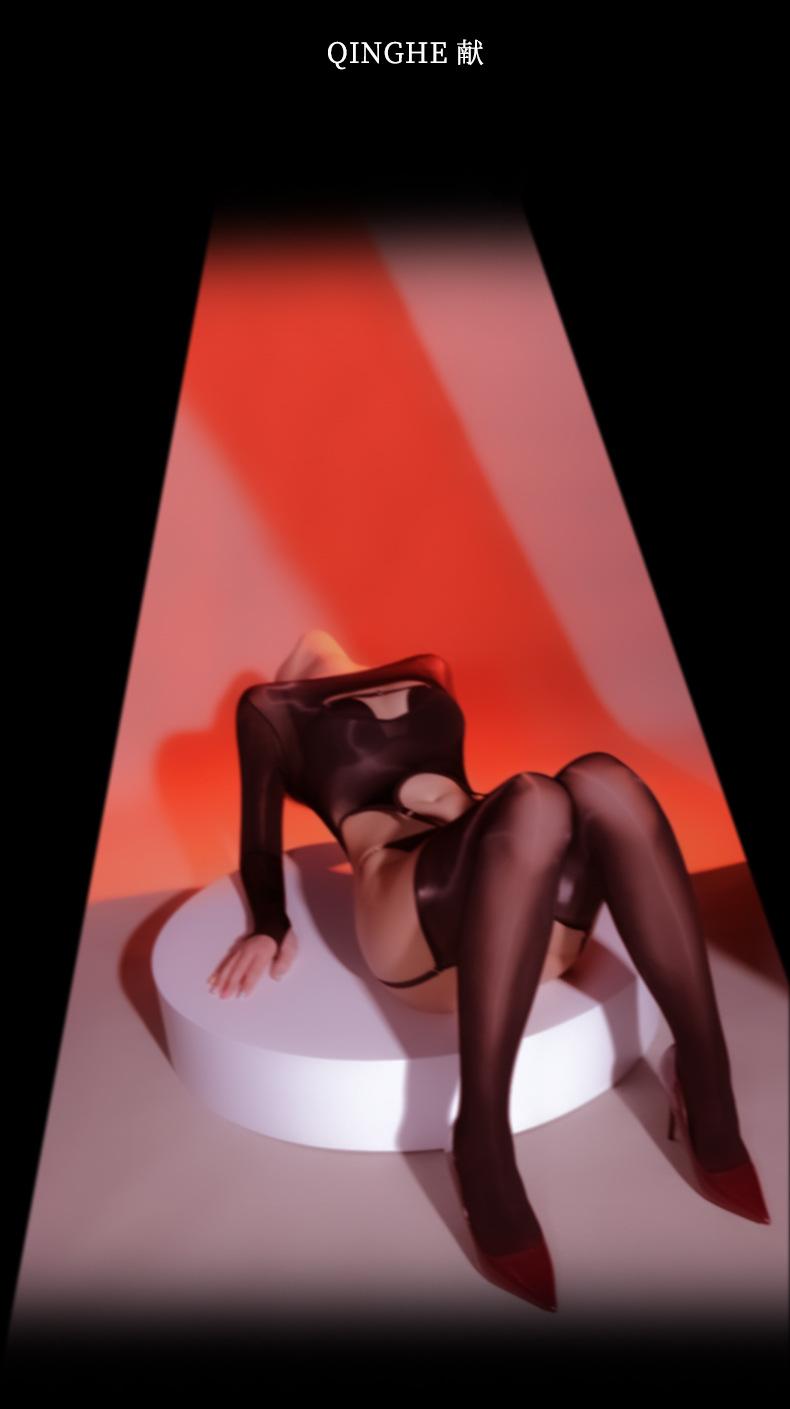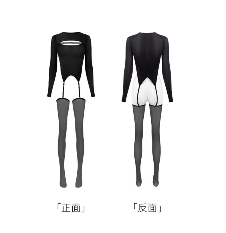 [shiny stockings] nine-quarter sleeve high-cut jumpsuit