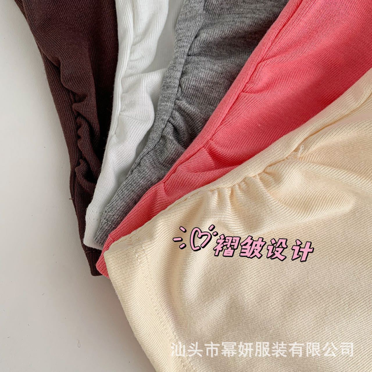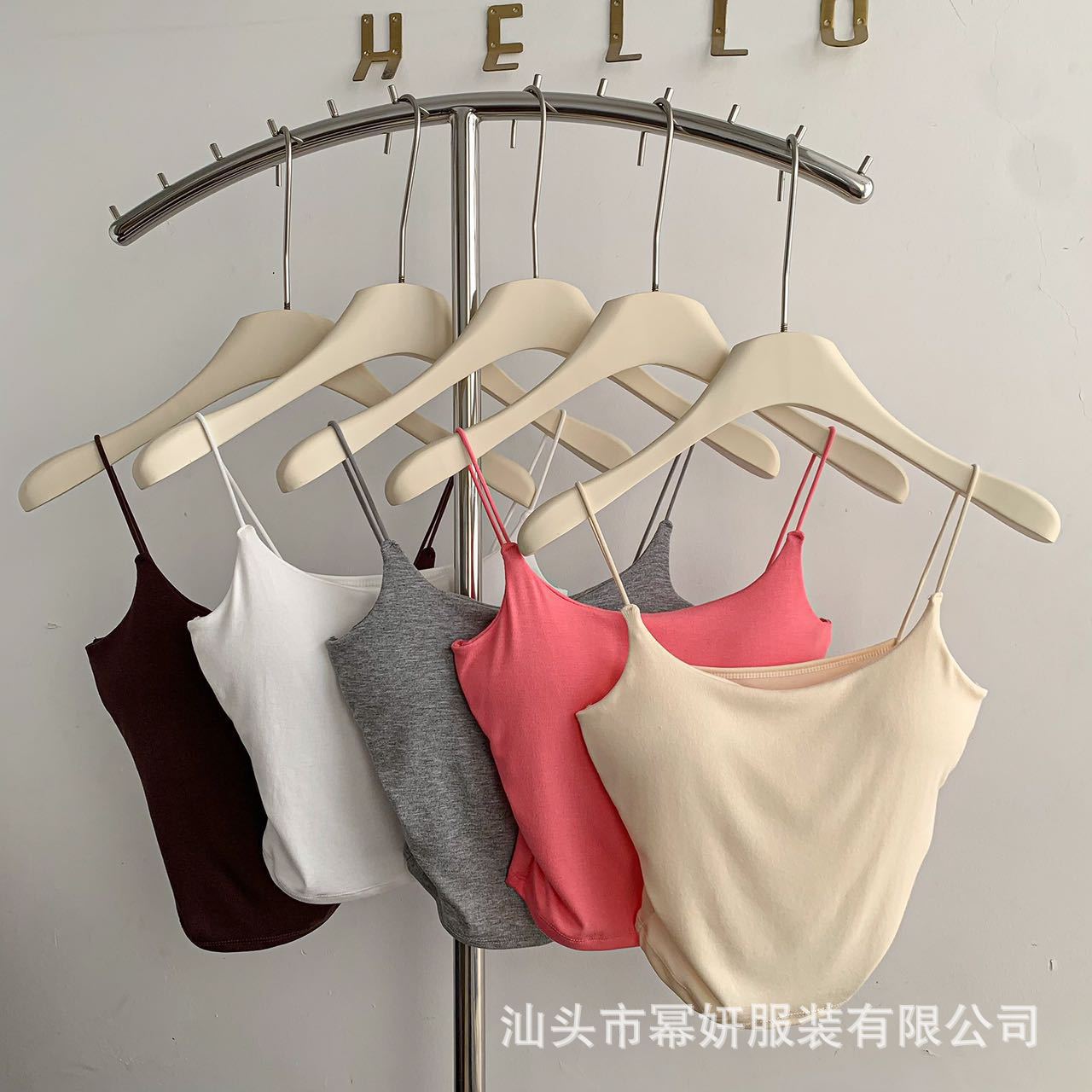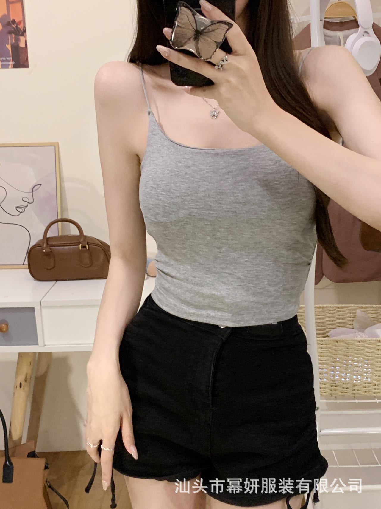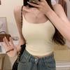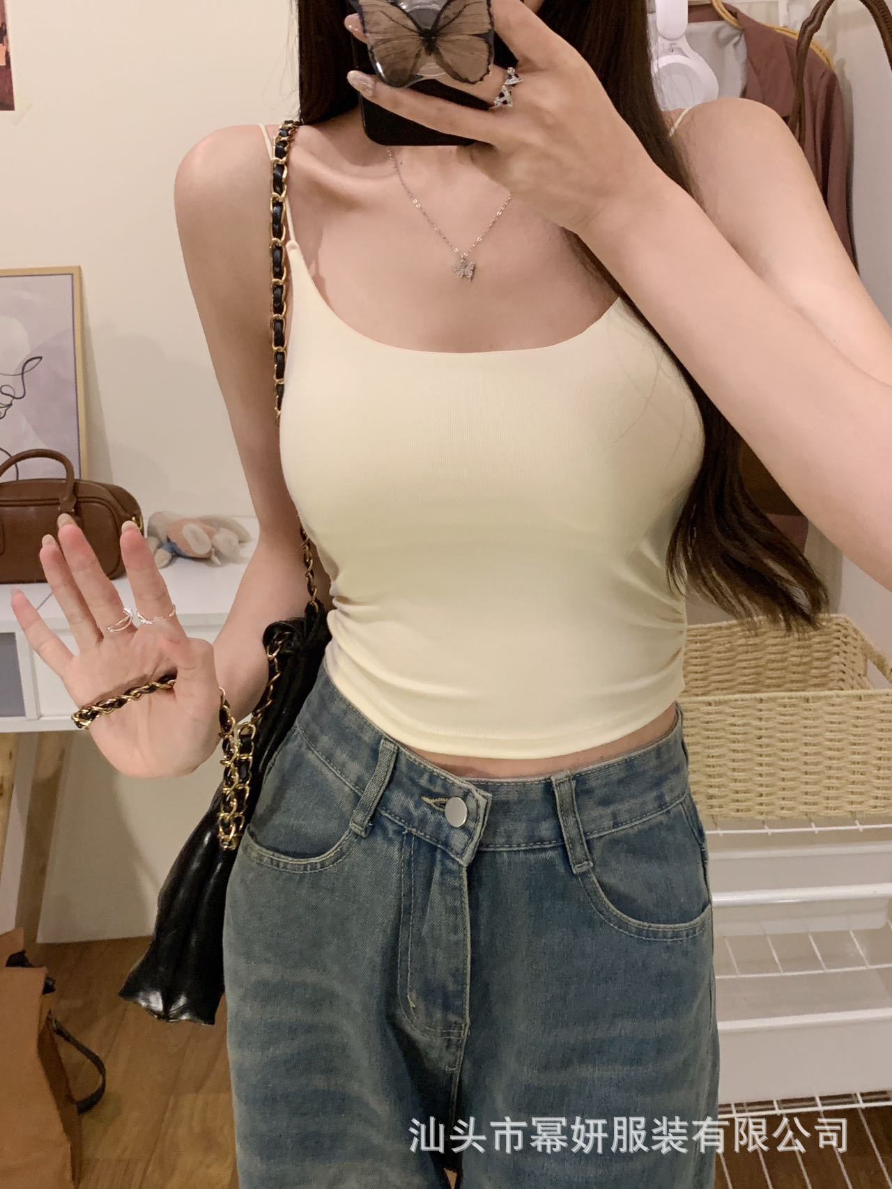 Camisola Chaleco de Cuello Redondo Dulce Puro de Tirantes Finos con Almohadilla en el Pecho Color Sólido Plisado Ajustado Ajustado Camiseta Base Top